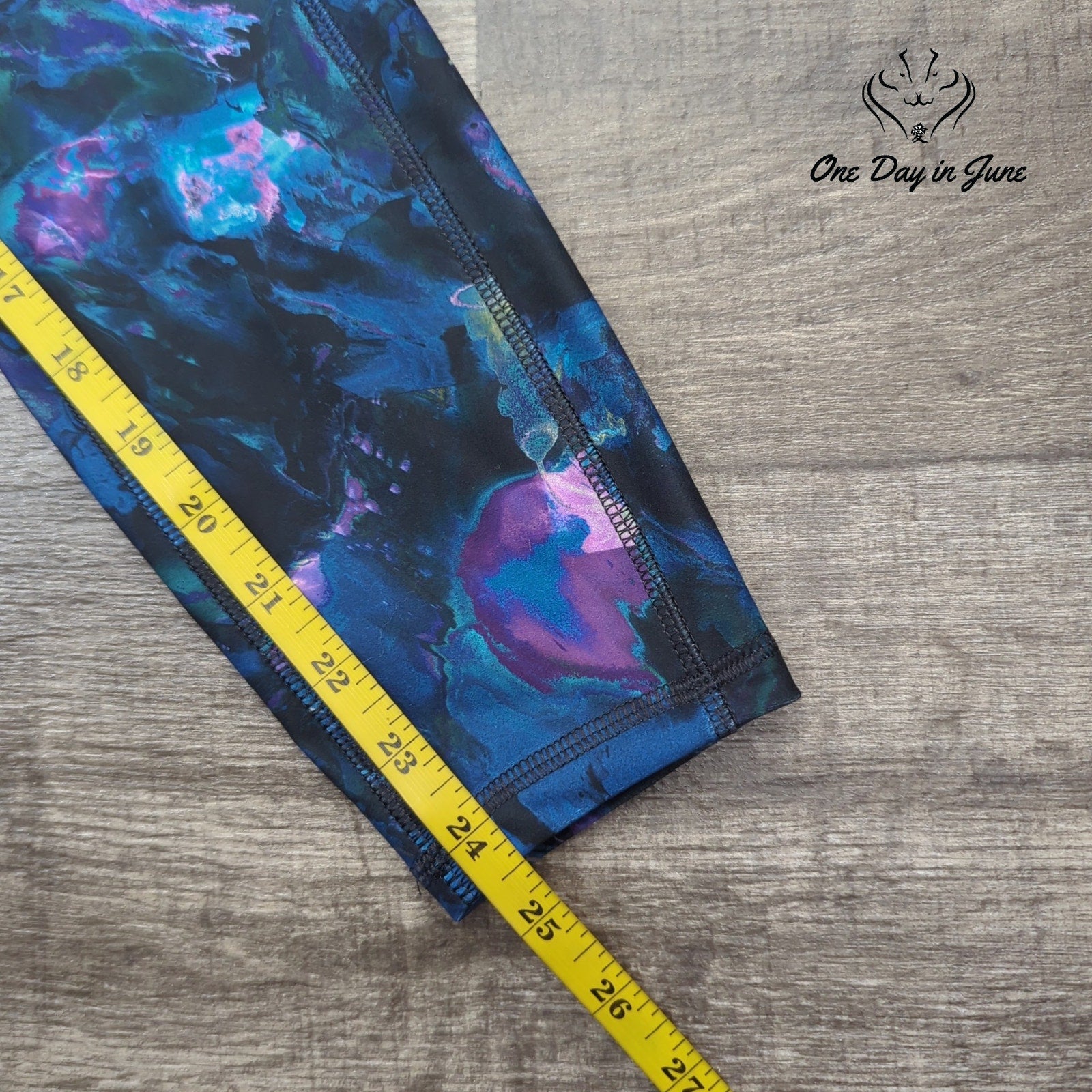 Oh, these blue leggings are comfy and bright, a perfect companion from morning till night! They stretch and they move with such wonderful ease, made with polyester and spandex to do as you please.