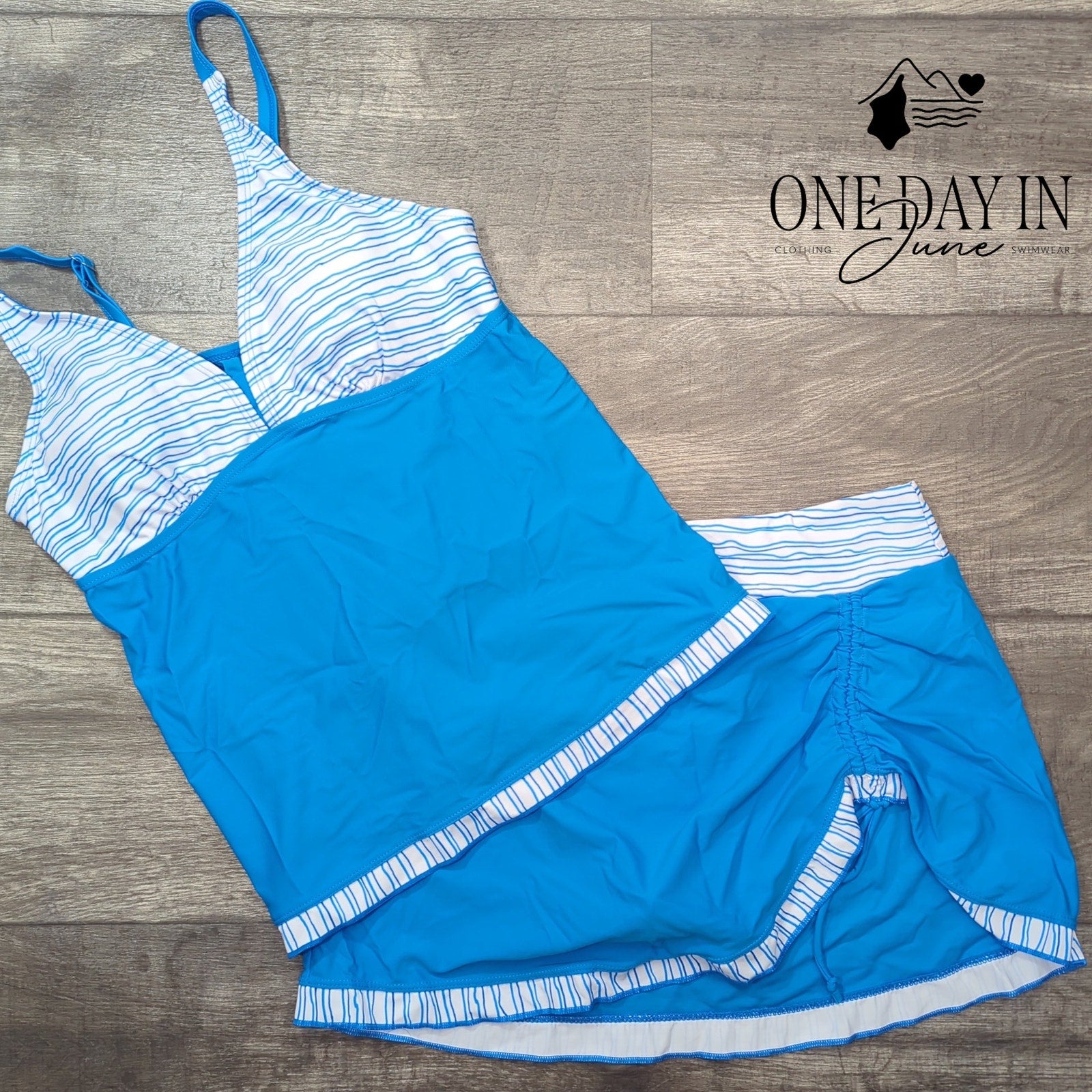 Dive into the aquatic madness with this electric blue tankini that screams rebellion against boring beachwear conformity. The polyester-spandex blend construction moves like liquid mercury across your torso while the skirted bottom dances with each wave like some kind of fabric poetry in motion. This pristine piece of swimming artillery sits waiting in perfect unworn condition, ready to transform any mundane pool party into a full-scale assault on the senses.