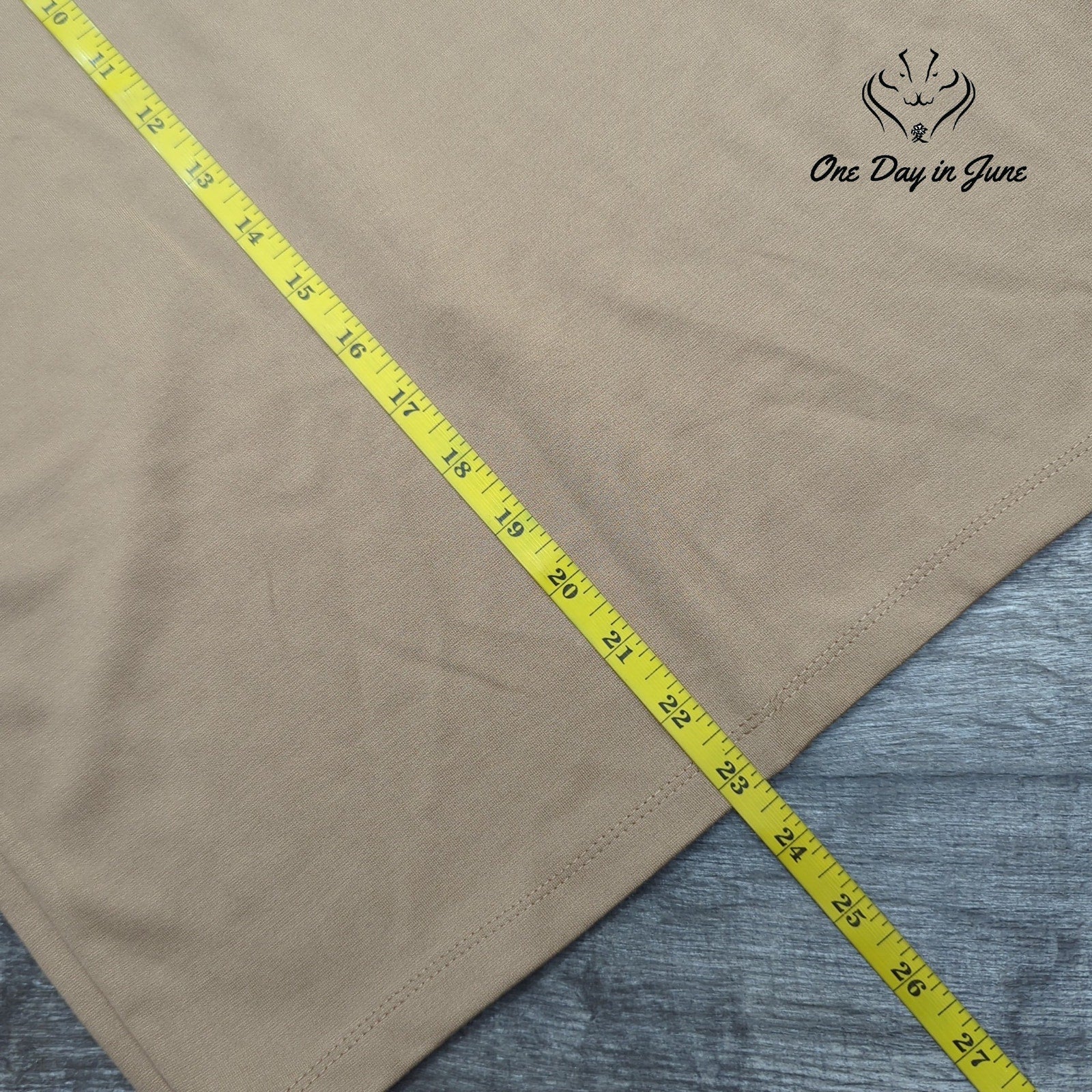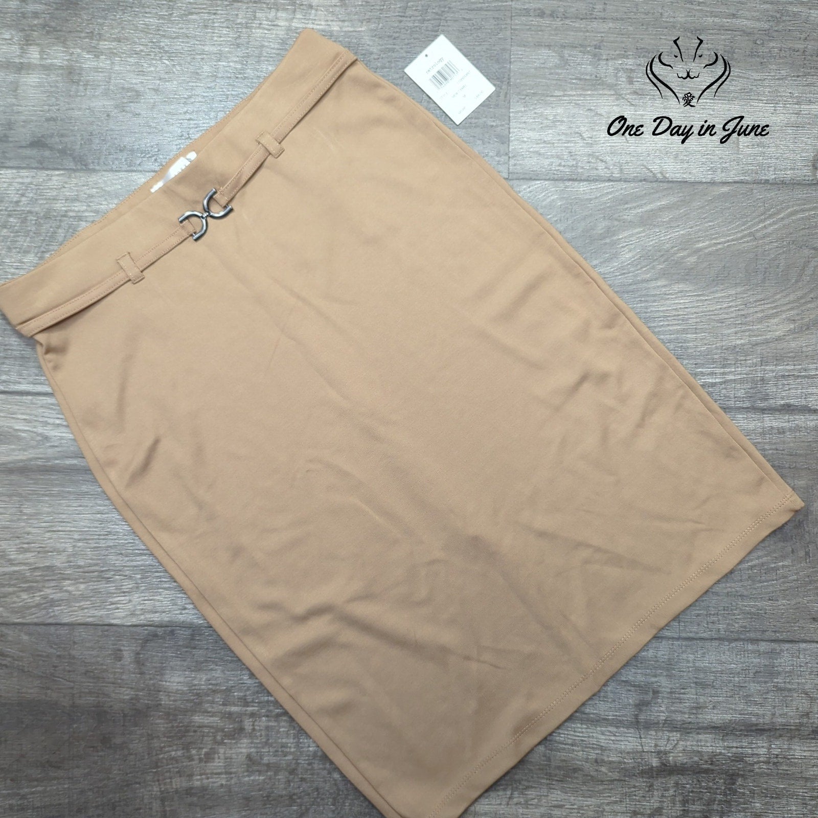 A most becoming pencil skirt in a delightful shade of tan, crafted from a sublime blend of rayon, polyester, and spandex for the utmost comfort and elegance. This Retrology creation remains in pristine condition, never having graced a lady's figure, and still bears its original markings of authenticity.