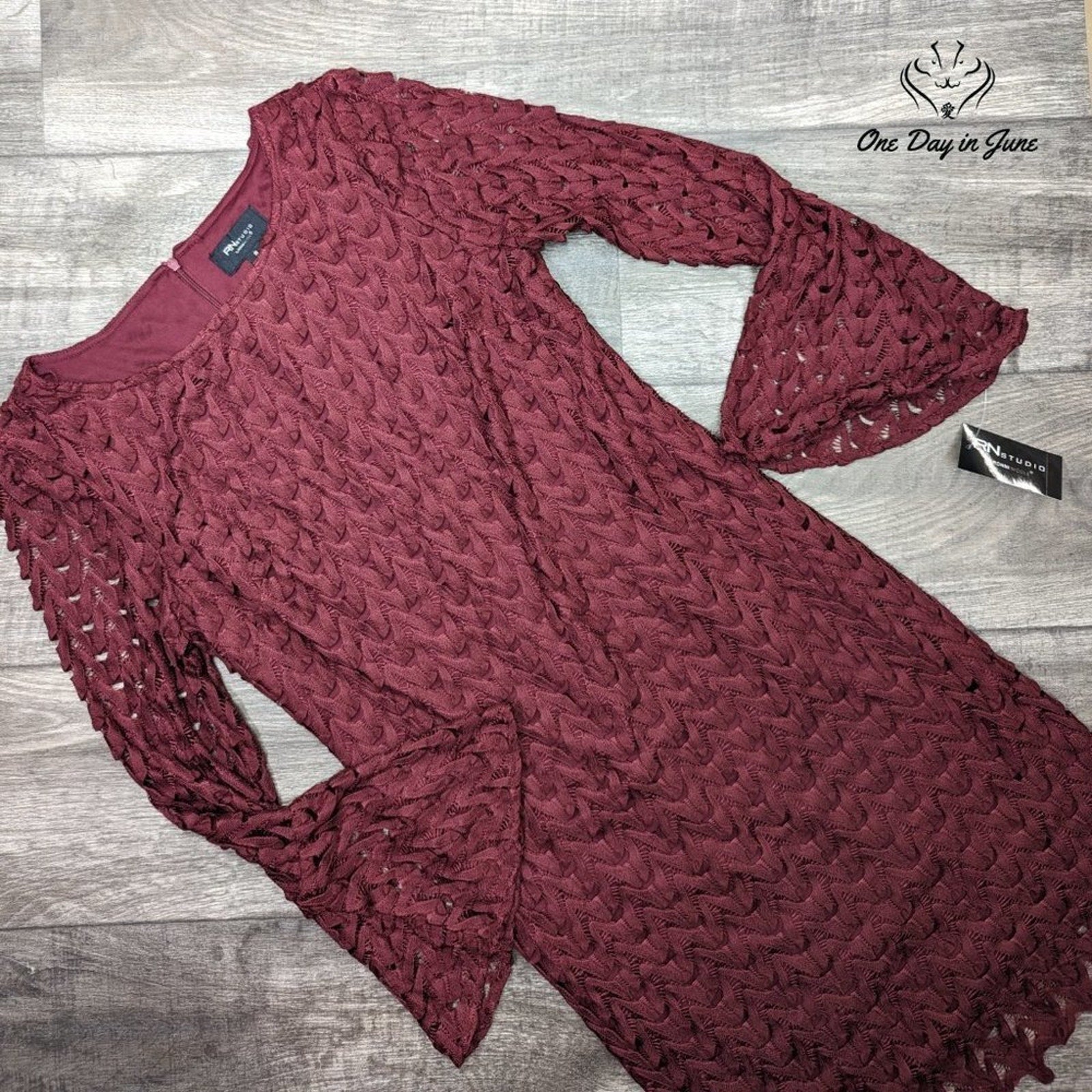 Bold as the dawn, this RN Studio long sleeve lined dress, fresh with tags, drapes in hues of red as passionate as the bullfight. Crafted in resilient polyester, it offers an enduring sophistication for the woman unafraid to seize the day.