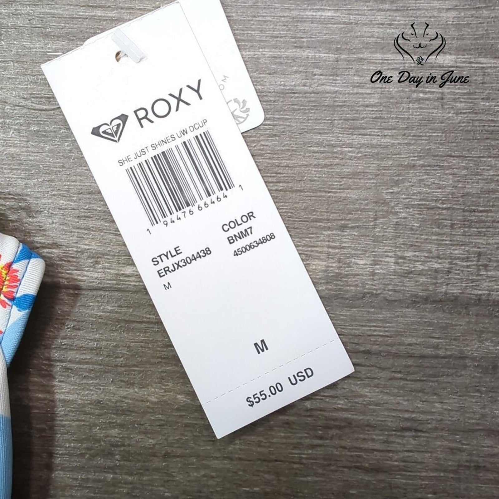 In seas of blue, it gleams so bright, a Roxy bikini top that's just right. Brand new with tags, it's the D cup dream, perfect for making a summer splash beam.