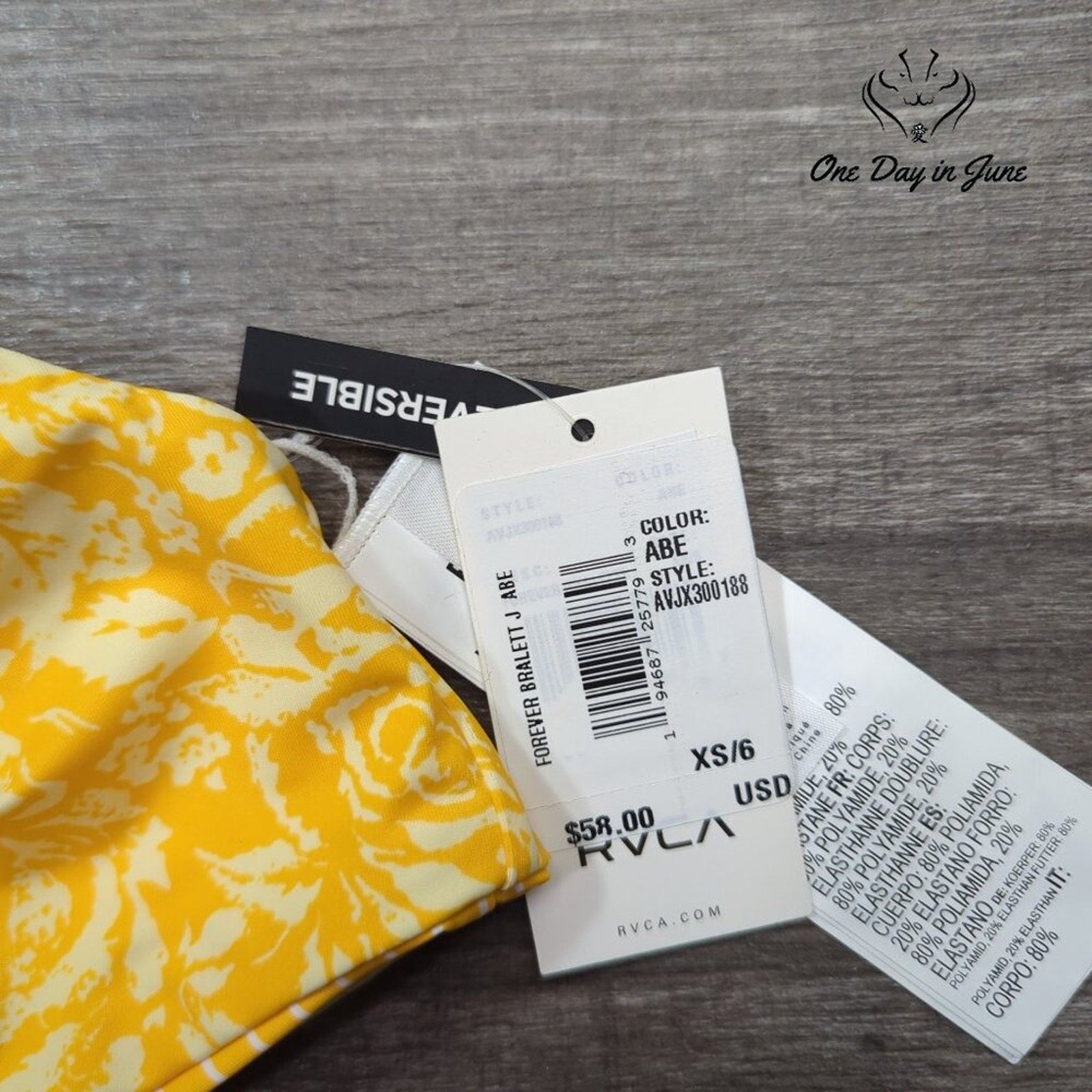 RVCA Forever Bralette Reversible Bikini Top Size XS
