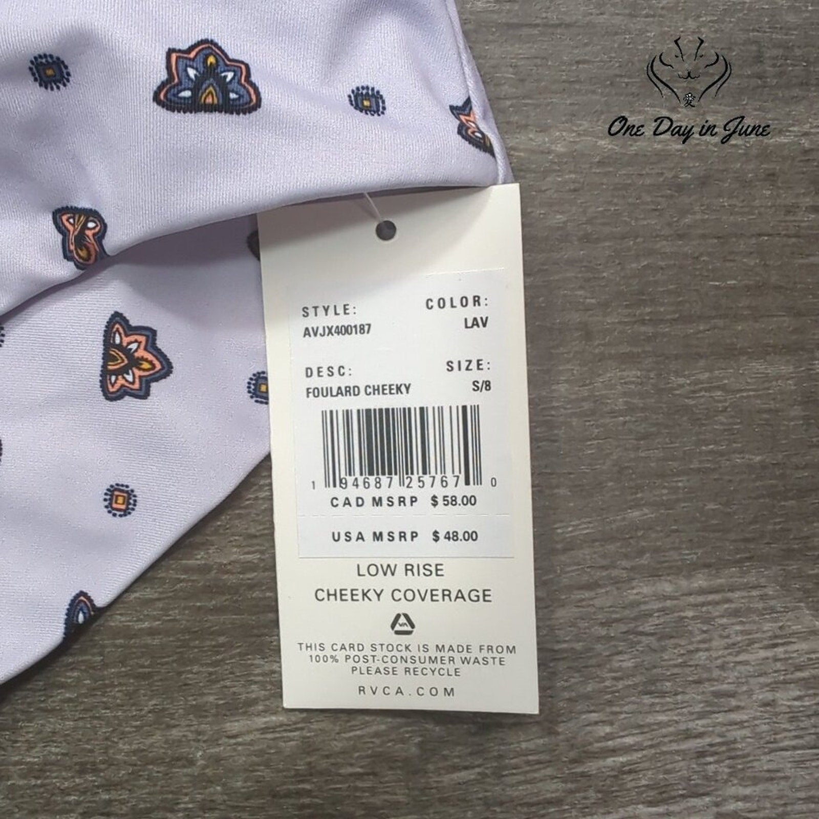 RVCA Foulard Cheeky Bikini Bottom Size S