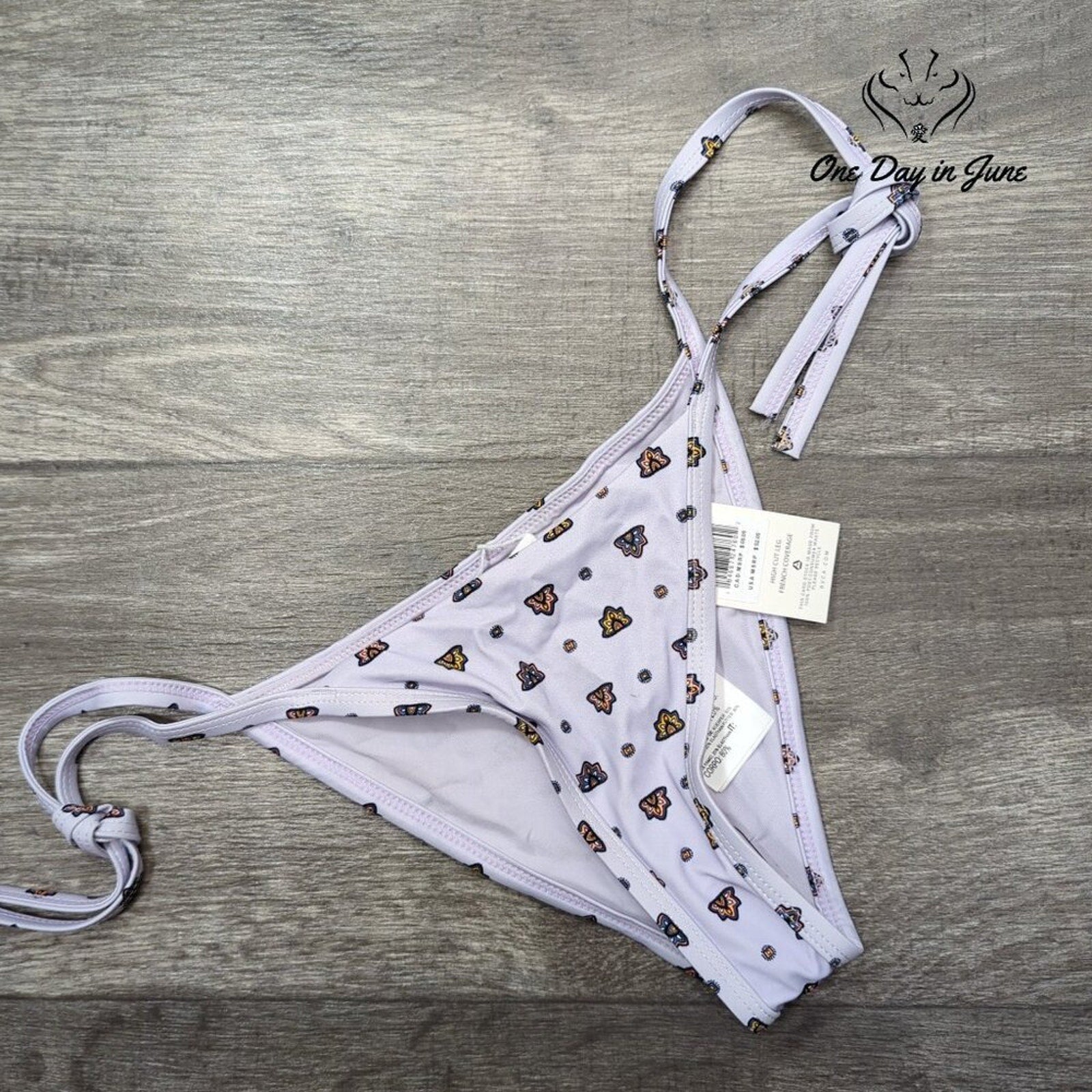 In a splashy array of colors divine, this RVCA bikini will make you shine. With tie sides so nifty, you're sure to look thrifty, in a brand new style that’s truly sublime!