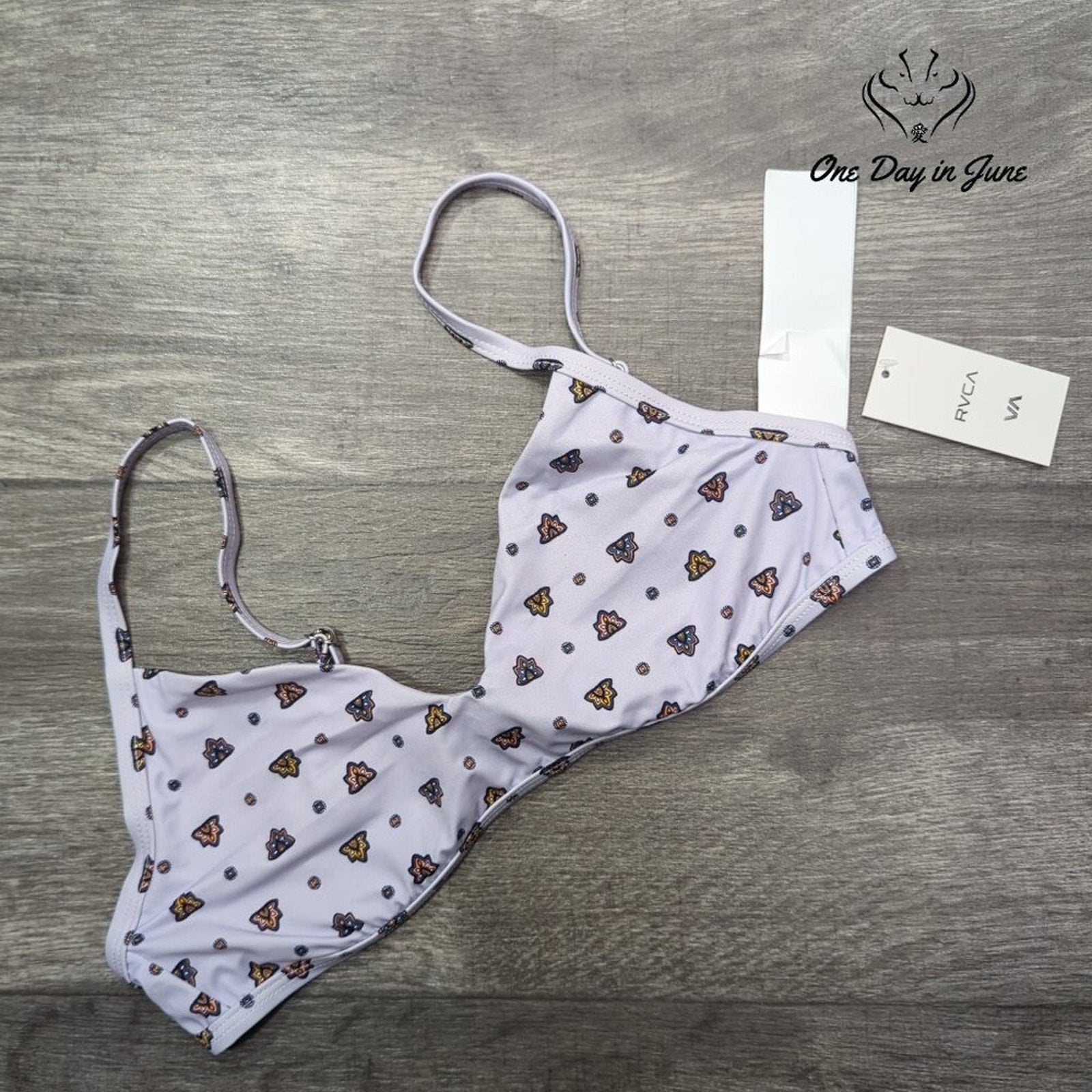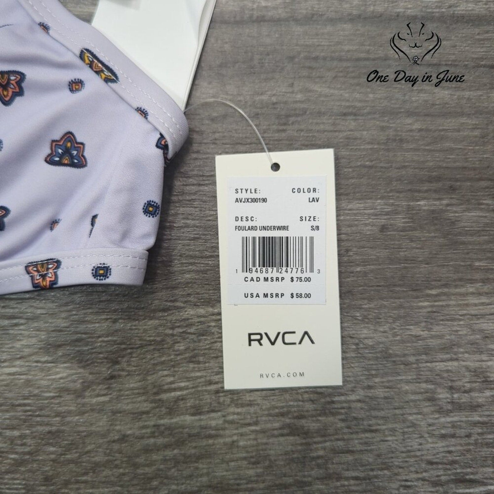 Delight in the enchanting allure of this Foulard Underwire Bikini Top by RVCA, a most becoming addition to any lady's summer wardrobe. Its rich purple hue and elegant design shall surely turn heads at the seaside, while the comfortable blend of polyester and elastane ensures a flattering fit for even the most discerning of beach-goers.