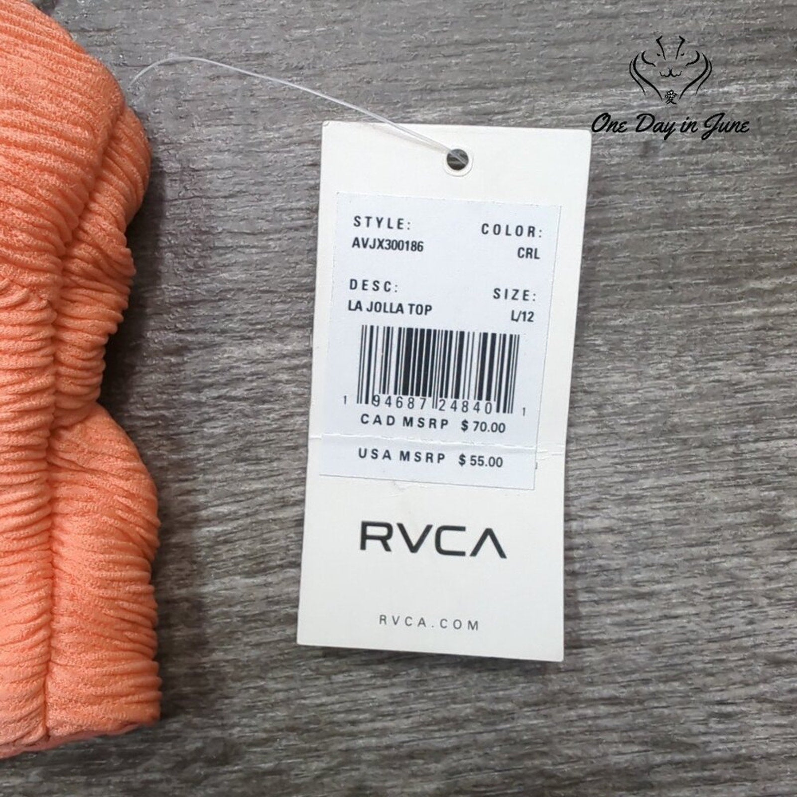 Radiant as a summer sunset, this RVCA La Jolla Crop Bikini Top beckons with its vibrant orange hue. A masterpiece of modern design, it blends polyester and elastane in a harmonious dance of comfort and style, promising endless days of carefree elegance by the shore.