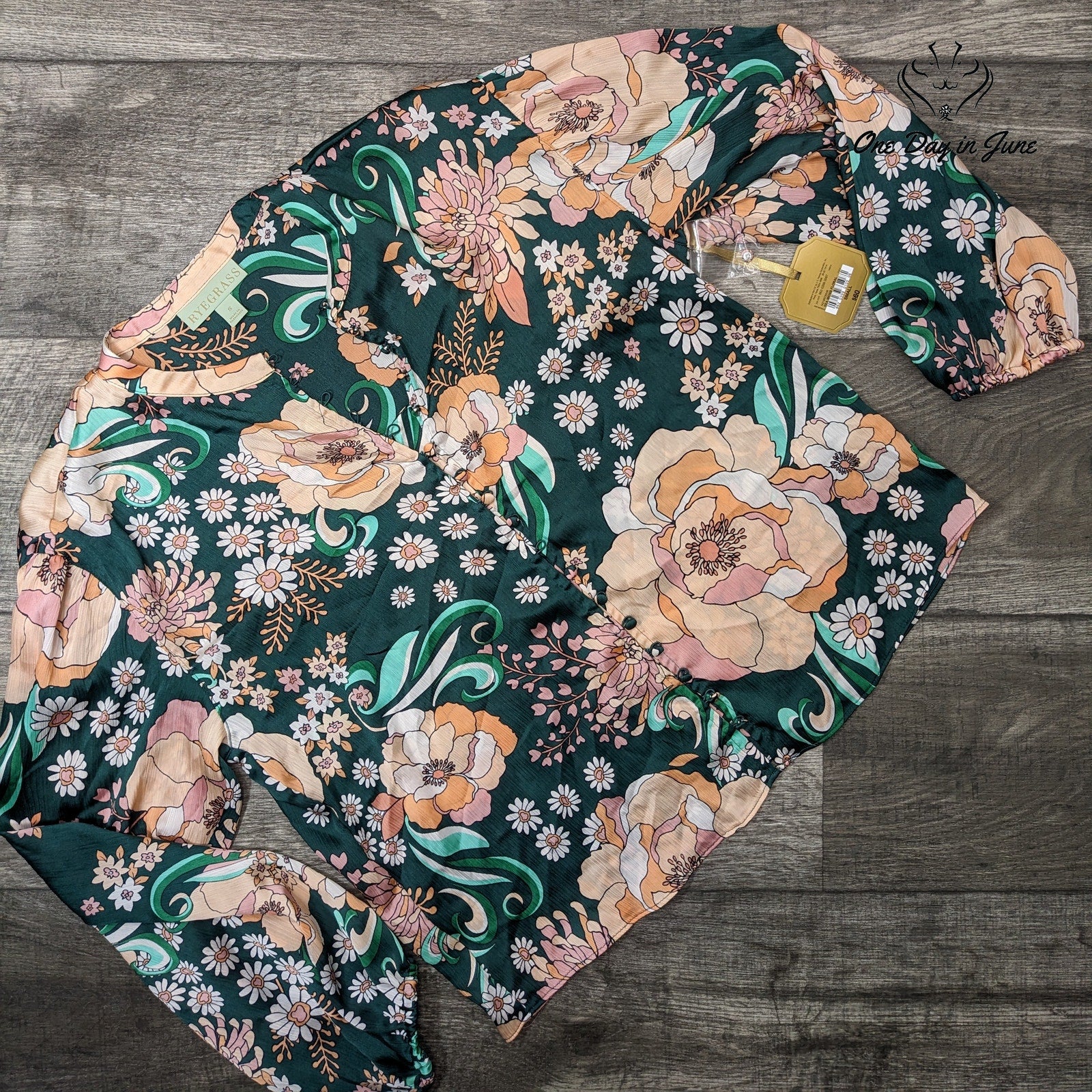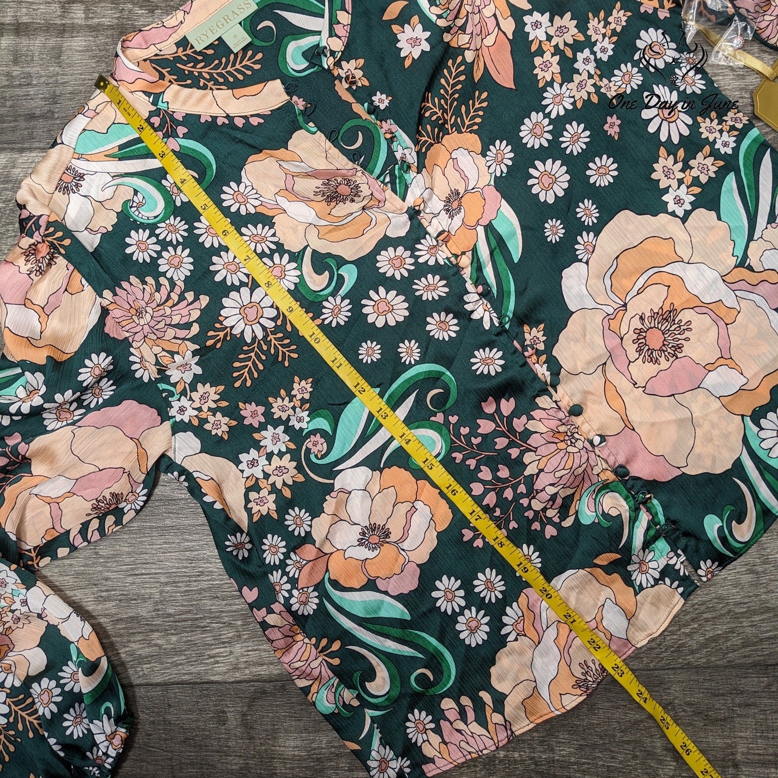 Ryegrass Sea Moss Floral Long Sleeve Top Size S