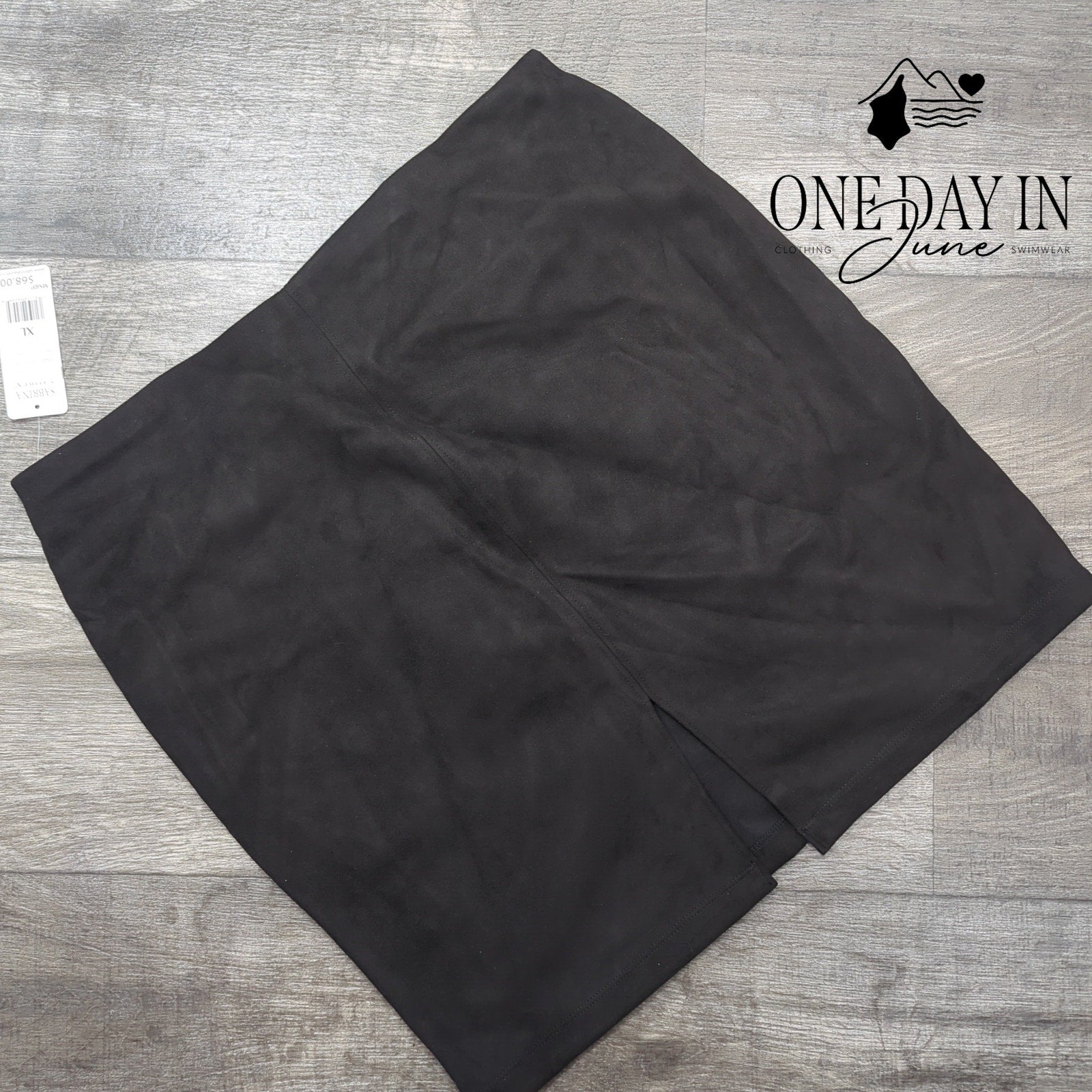 A most charming faux suede mini skirt in elegant black, crafted by Sabrina Lauren with exquisite attention to detail. This delightful piece combines the luxurious appearance of suede with the practical comfort of a polyester and spandex blend, ensuring both style and ease of movement. Brand new with tags, it awaits the discerning lady who appreciates both fashion and convenience in equal measure.
