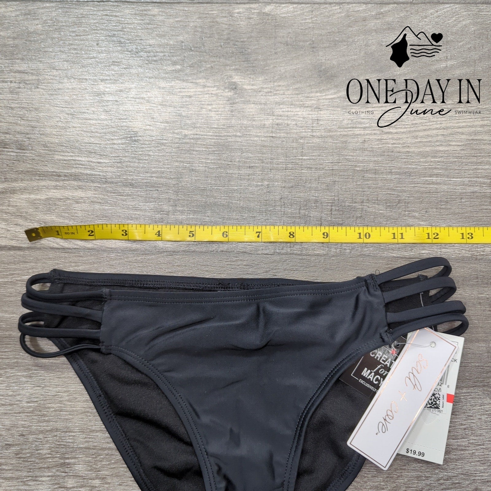 This Salt & Cove bikini bottom whispers of summer afternoons and crystalline waters, its obsidian hue promising both mystery and timeless elegance. Crafted from a luxurious blend of nylon and spandex, it embraces the figure with the gentle confidence of a perfect poem. New with tags, it awaits its debut beneath golden sun and endless sky.