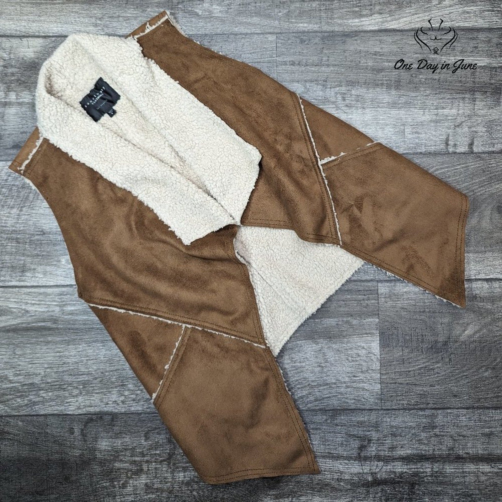 In the likeness of a freshly brewed pot of tea, this Sanctuary fleece-lined vest is warm and inviting. Presented in a robust brown hue, it is in splendid condition, appearing near new. Crafted from the finest polyester, it's the perfect accompaniment for a lady's casual yet refined wardrobe.