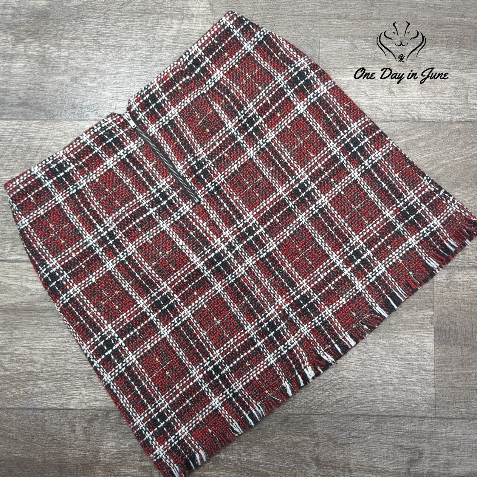 Dancing between red and black, this charming Sanctuary mini skirt captures the bold spirit of modern fashion. Crafted from a luxurious blend of polyester, wool, nylon, and acrylic, it promises both comfort and elegance while maintaining its pristine, unworn condition.