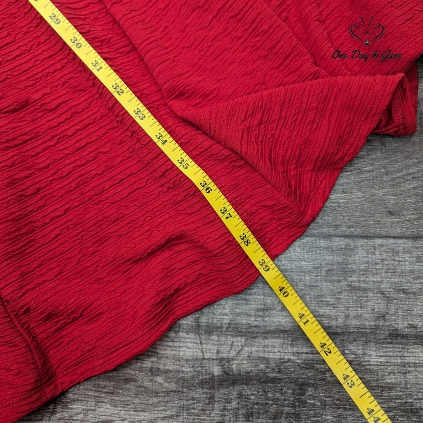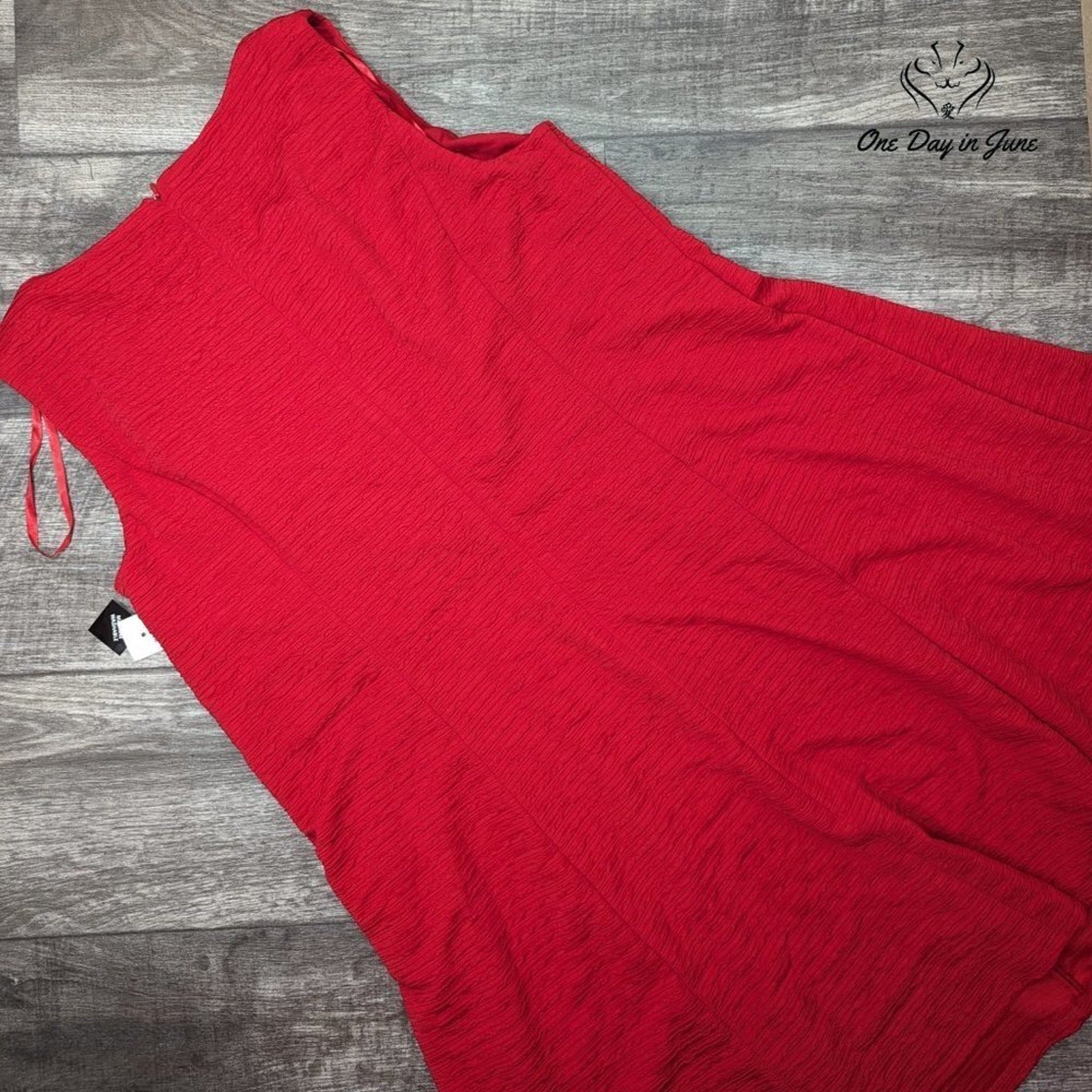 In a hue of splendid red, this Sandra Darren frock will turn every head! With a beaded collar that gleams so bright, you'll be the belle of the ball, a truly stunning sight!