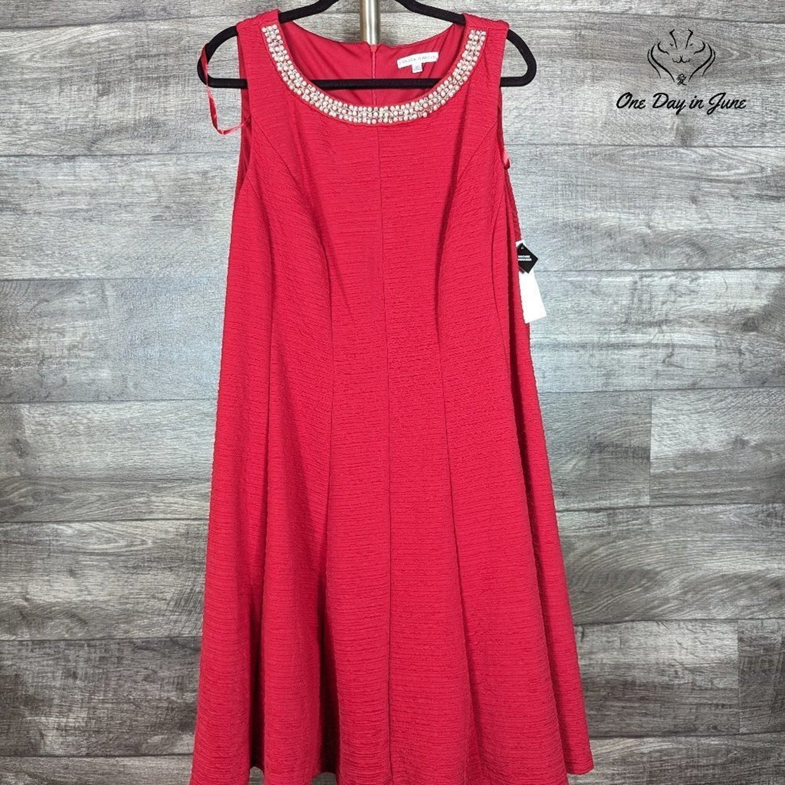 Sandra Darren Plus Size Beaded Collar Sleeveless Dress Size 14W