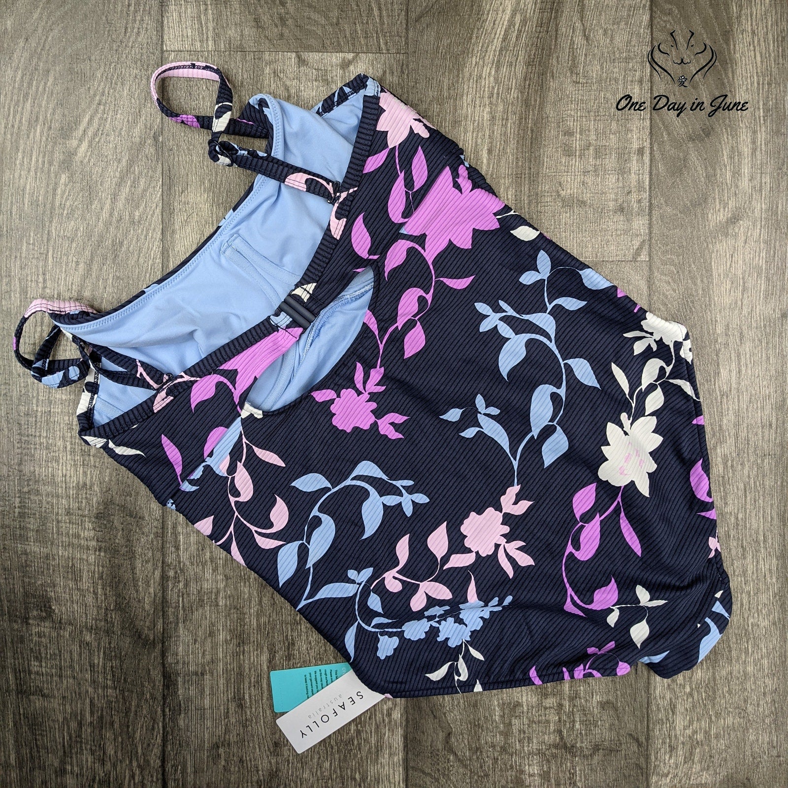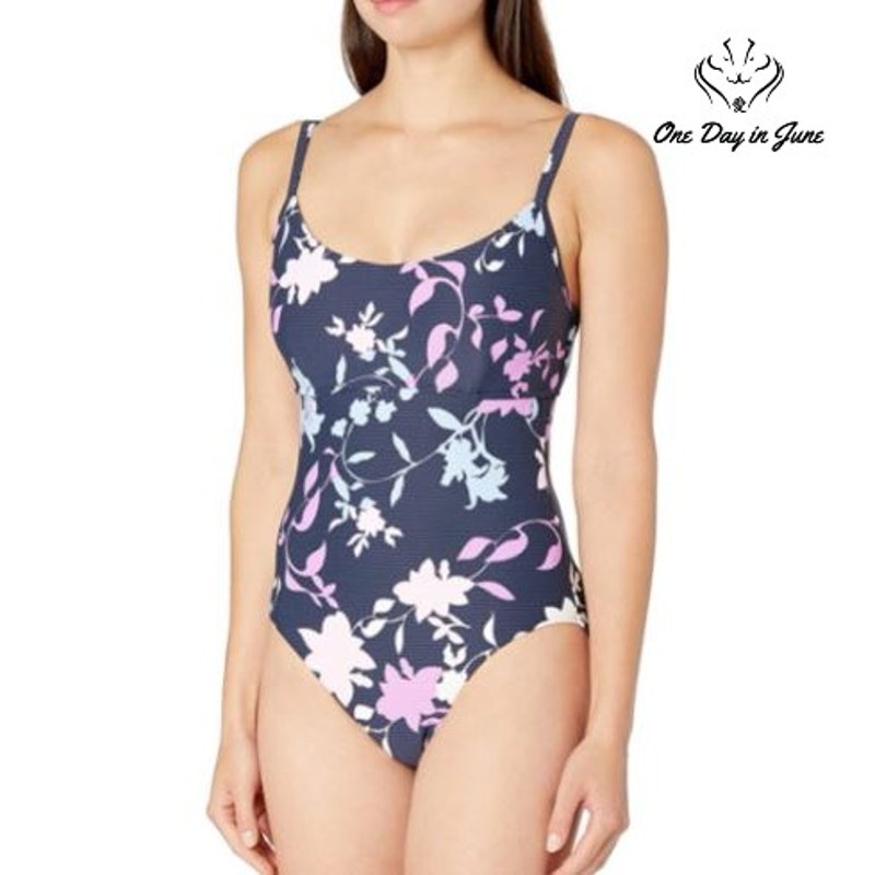 Dive into elegance with this Seafolly one-piece swimsuit, a vision in deep indigo. Its scoop front neckline gracefully frames the décolletage, while the sleek silhouette embraces the form with a touch of Jazz Age allure. Crafted from a blend of polyester and spandex, this swimwear marvel promises both comfort and style for your seaside escapades.