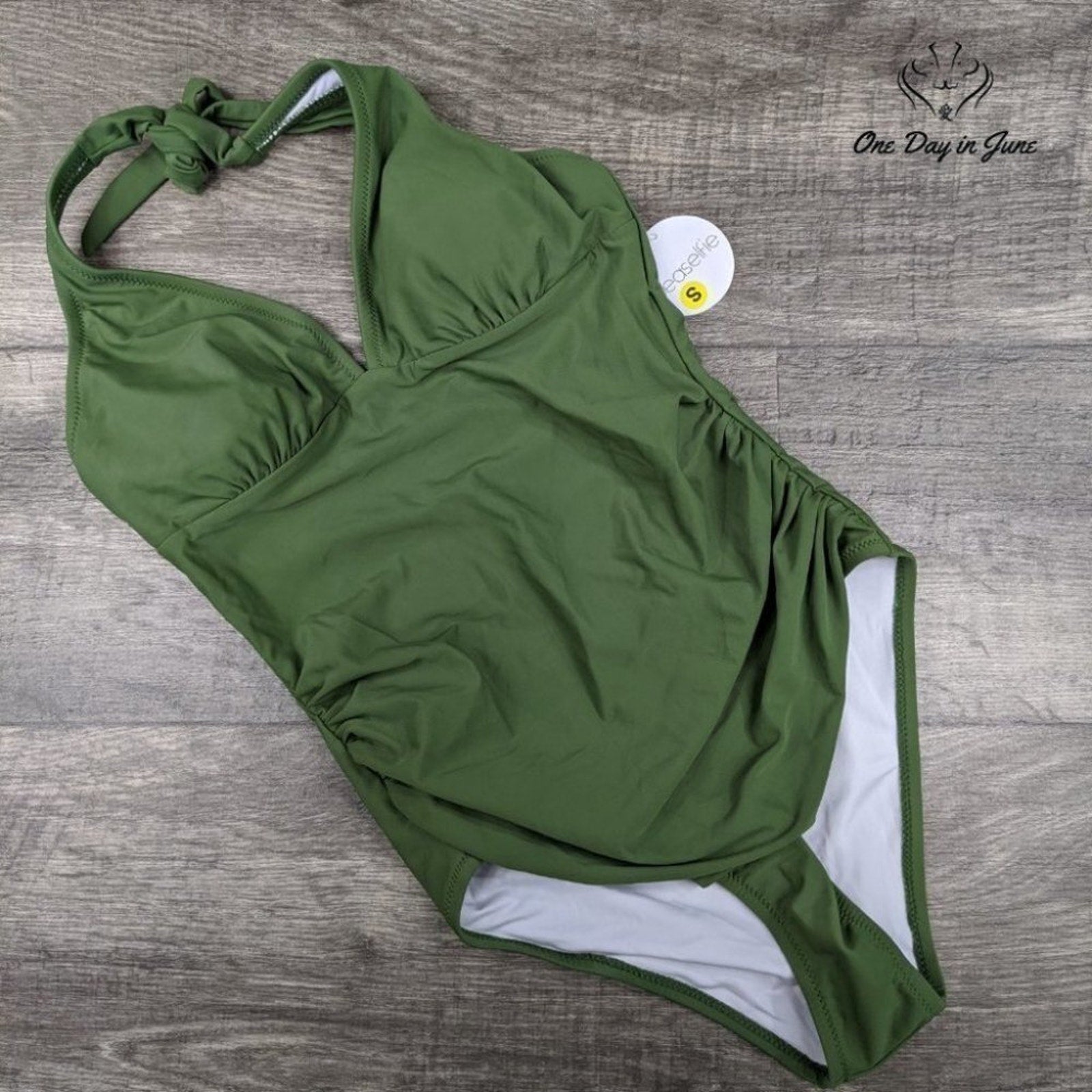 The Green Machine screams vintage vibes with a high-waisted cut that'll make you look like some kind of aquatic goddess emerging from the foam, ready to conquer the beach scene with all the confidence of a woman who knows exactly what she's doing. That convertible halter situation means you're not locked into one look—twist it, turn it, make it yours while the polyester-spandex blend keeps everything tight and right through whatever mad adventures await you in the surf. Fresh from the factory with tags still attached, this SEASELFIE number is your ticket to shoreline supremacy.