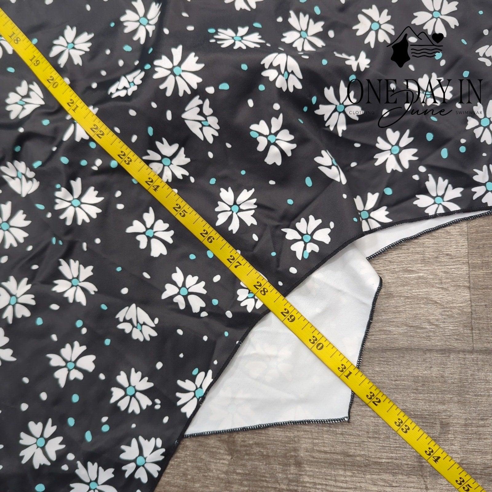 A most becoming floral swimdress that shall prove itself the perfect companion for seaside sojourns and poolside promenades alike. This charming black confection, adorned with delicate blooms, offers the wearer both elegance and comfort in equal measure. Crafted from a delightful blend of polyester and spandex, it promises to flatter the feminine form whilst allowing for the most spirited of aquatic pursuits.
