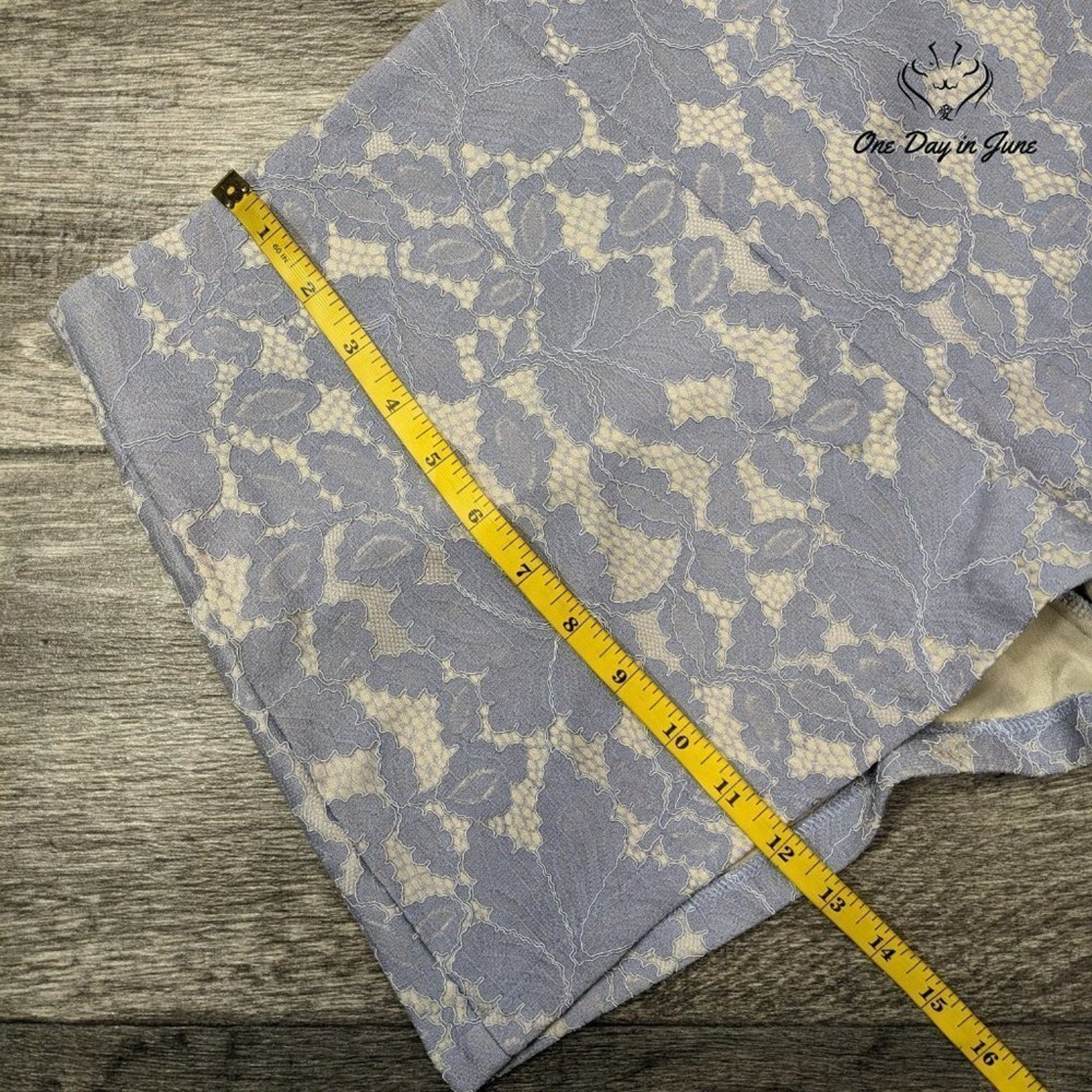These charming textured shorts in a pleasing shade of blue are certain to recommend themselves to any lady of discerning taste who values both comfort and style in her summer wardrobe. Fashioned from a most agreeable blend of cotton and polyester, they remain in excellent condition, having scarcely made the acquaintance of their previous owner. A delightful addition to one's collection of casual attire, suitable for promenades in the park or leisurely pursuits about town.