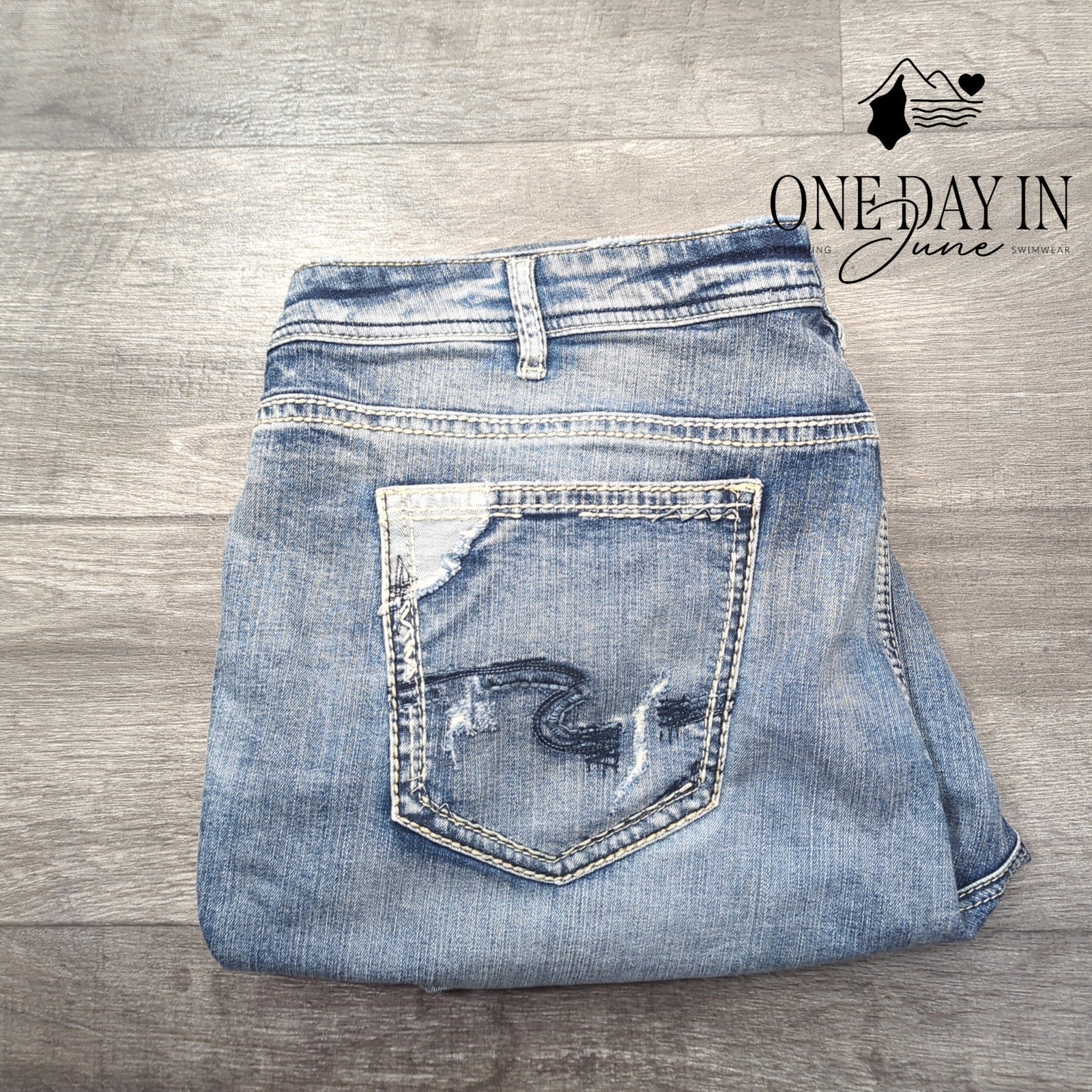 Tags: #SilverJeansCoPlus #WomensCapriJeans #BlueDenim