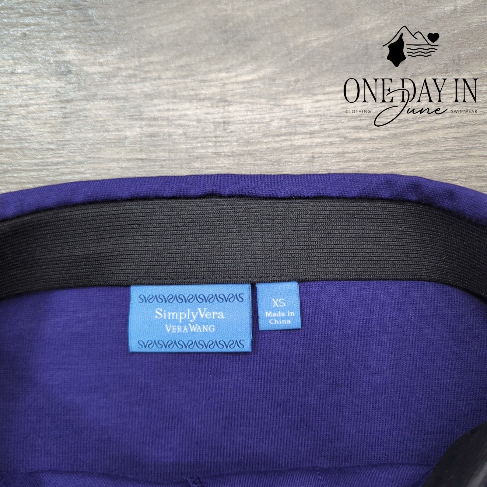 This purple mini skirt is quite the treat, with cotton and polyester making it oh-so-neat! Simply Vera brings you style that's new with tags, perfect for dancing or carrying your bags!