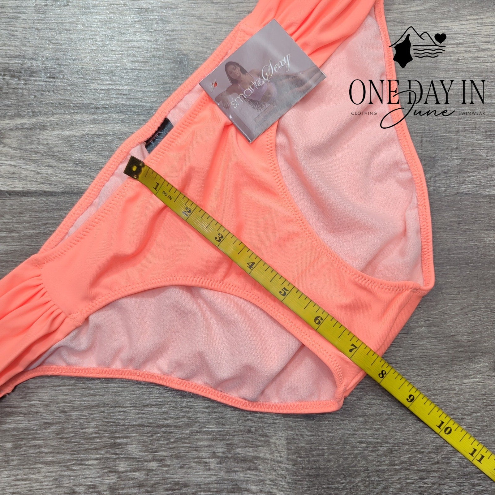 The orange flames of summer madness dance across your skin in this moderate coverage bikini bottom that screams rebellion against boring beachwear. This polyester spandex blend moves like liquid mercury across the curves of destiny, engineered for the woman who refuses to fade into the background of another mundane poolside scene. Brand new with tags still attached, this bottom promises to transform any ordinary water adventure into a technicolor fever dream of confidence and style.