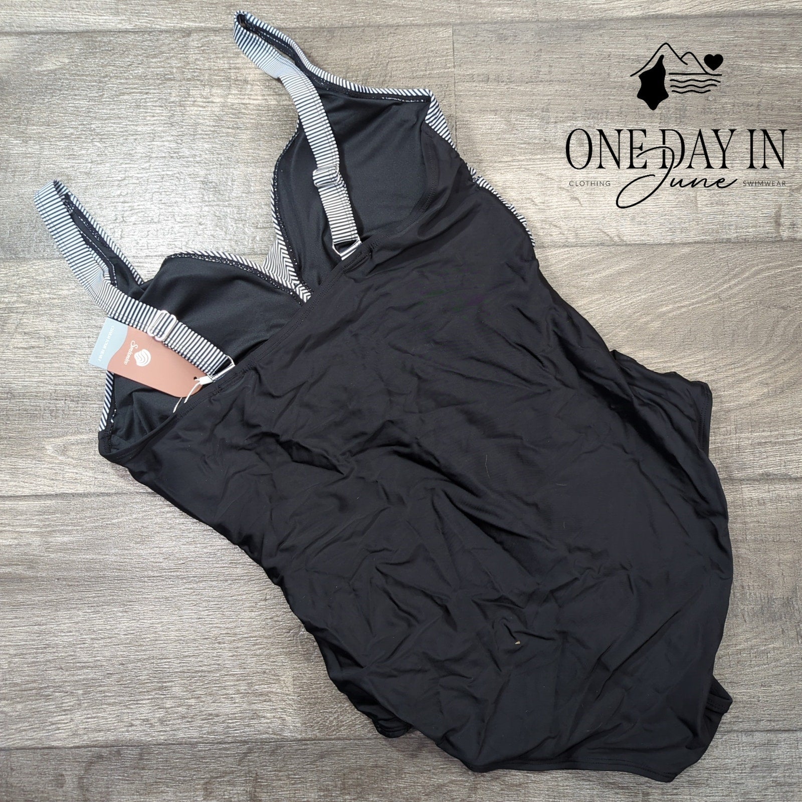 The twisted front of this savage black beast creates an optical illusion that'll make poolside witnesses question their own reality while you slice through the water like some kind of aquatic warrior goddess. This isn't your grandmother's bathing costume—it's a polyester-spandex fusion engineered for maximum impact, complete with tags still dangling like evidence of its factory-fresh authenticity. Whether you're conquering the local swimming hole or storming the beaches of some godforsaken resort town, this one-piece armor will have you looking like you mean business in the brutal summer heat.
