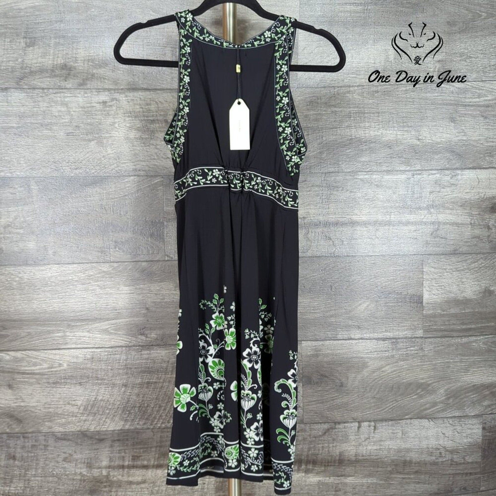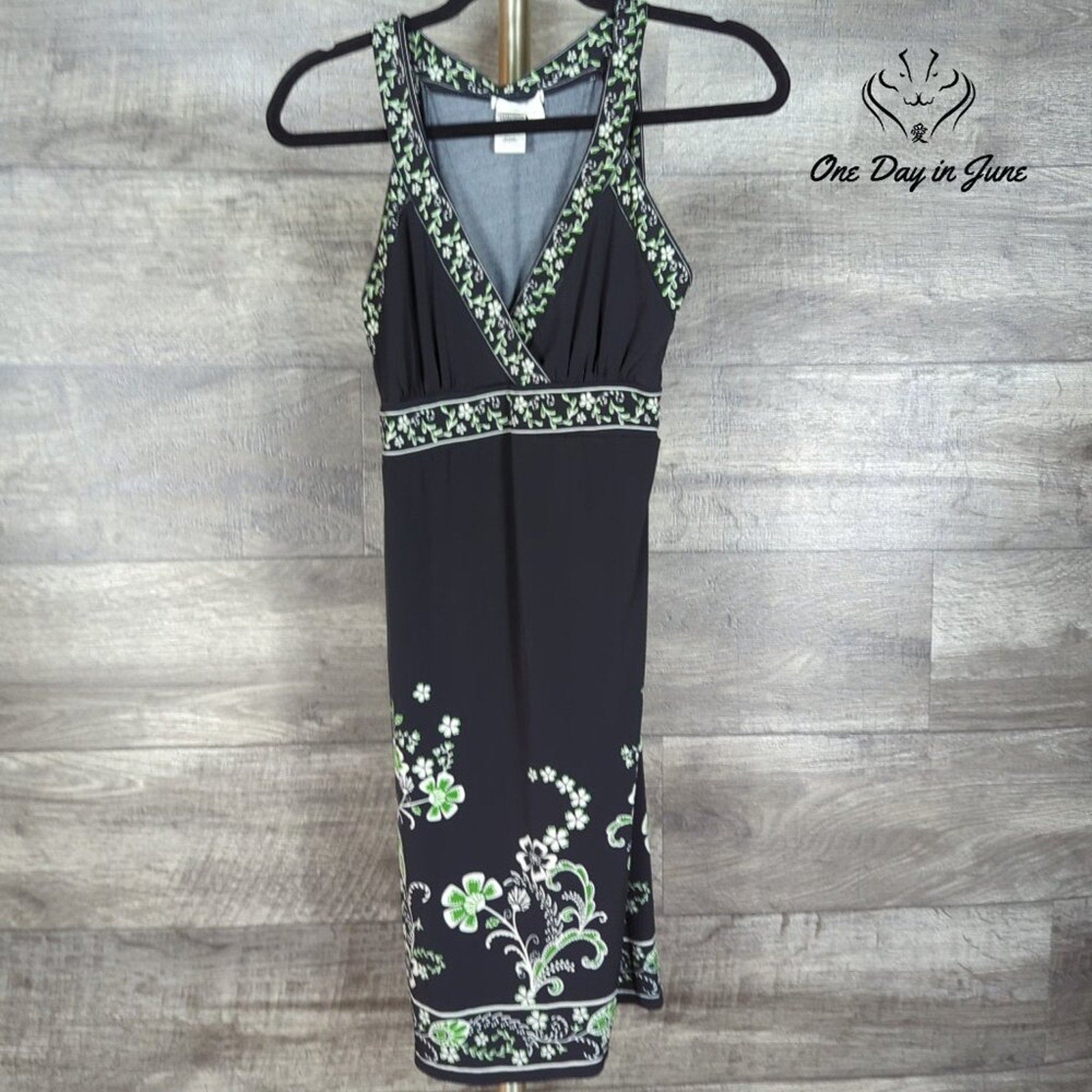 This black summer dress, sleek and smart, is perfect for a day when the sun plays its part. New with tags, it’s comfy and fun, a V-neck delight for everyone!
