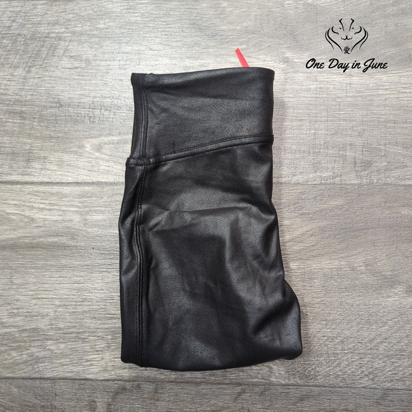 Behold, dear reader, a most exquisite pair of leggings from the esteemed house of Spanx. These mid-rise ankle-length garments, crafted in the deepest shade of midnight, promise to flatter the figure with their nylon and elastane composition. Though never adorned with tags, they remain in pristine condition, awaiting a discerning lady to make them her own.