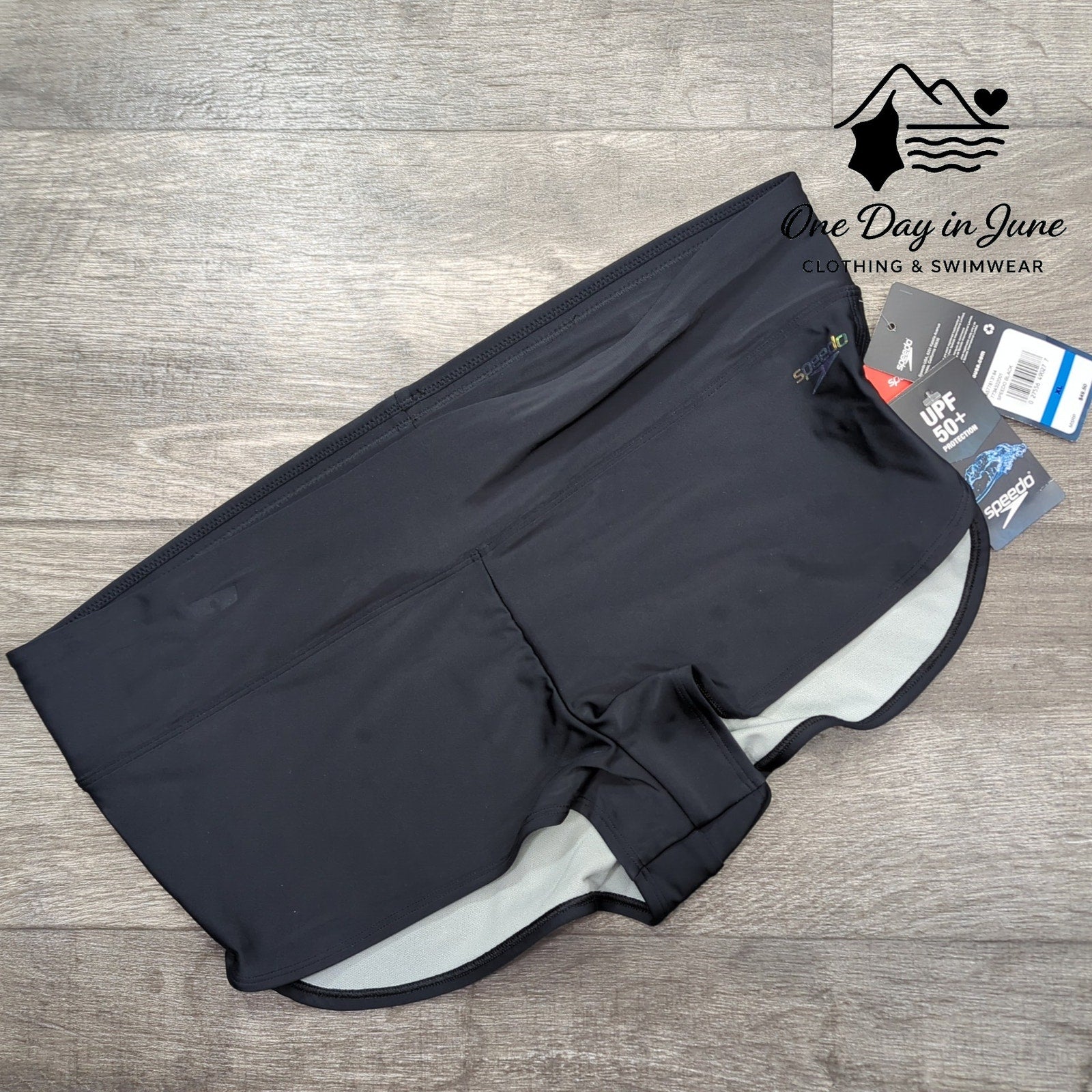 Sleek and refined, these Speedo boyshort bikini bottoms beckon with midnight allure, promising poolside elegance with every ripple of water. Crafted from a supple blend of nylon and elastane, they offer a silhouette both modest and flattering—a modern essential for the woman who swims with timeless grace.