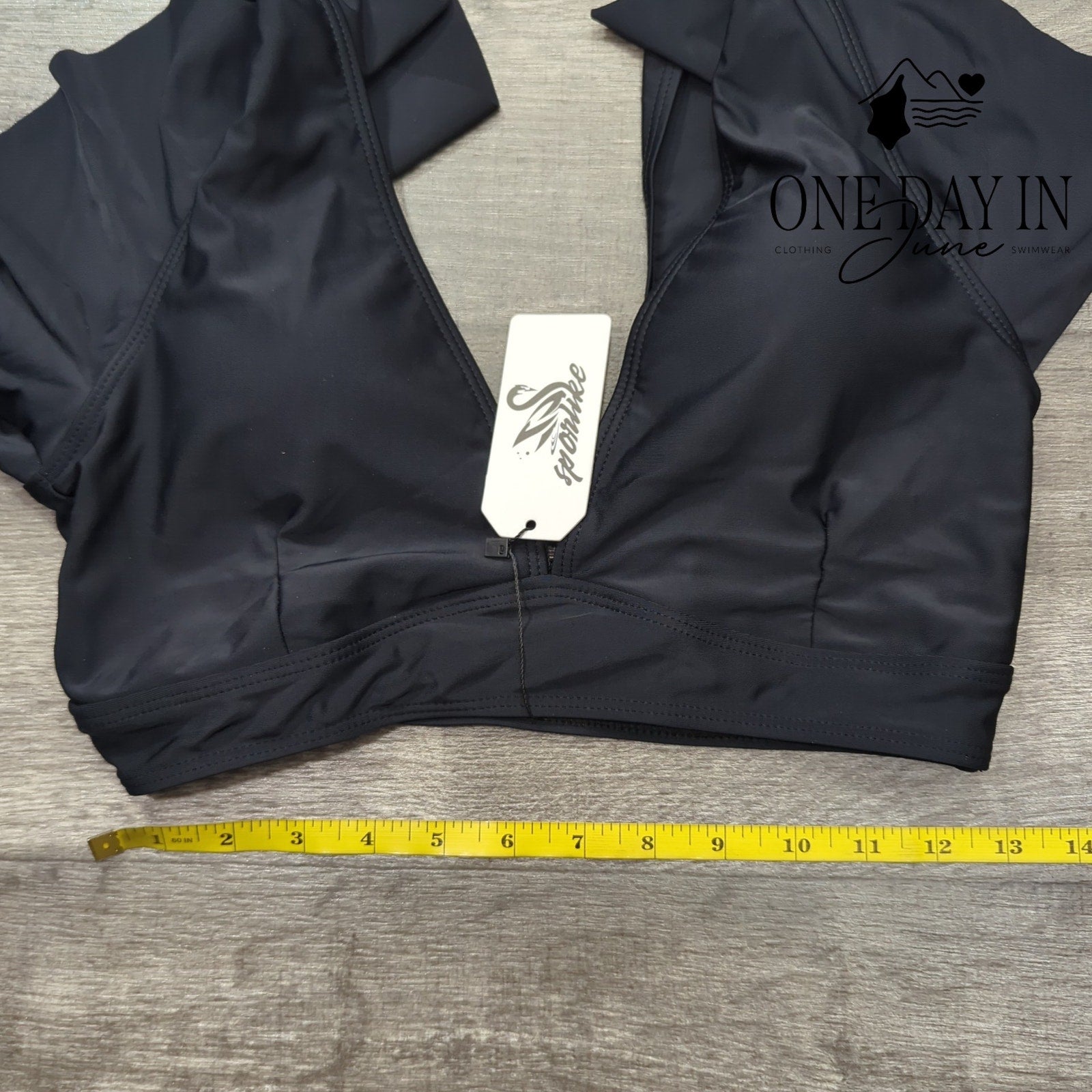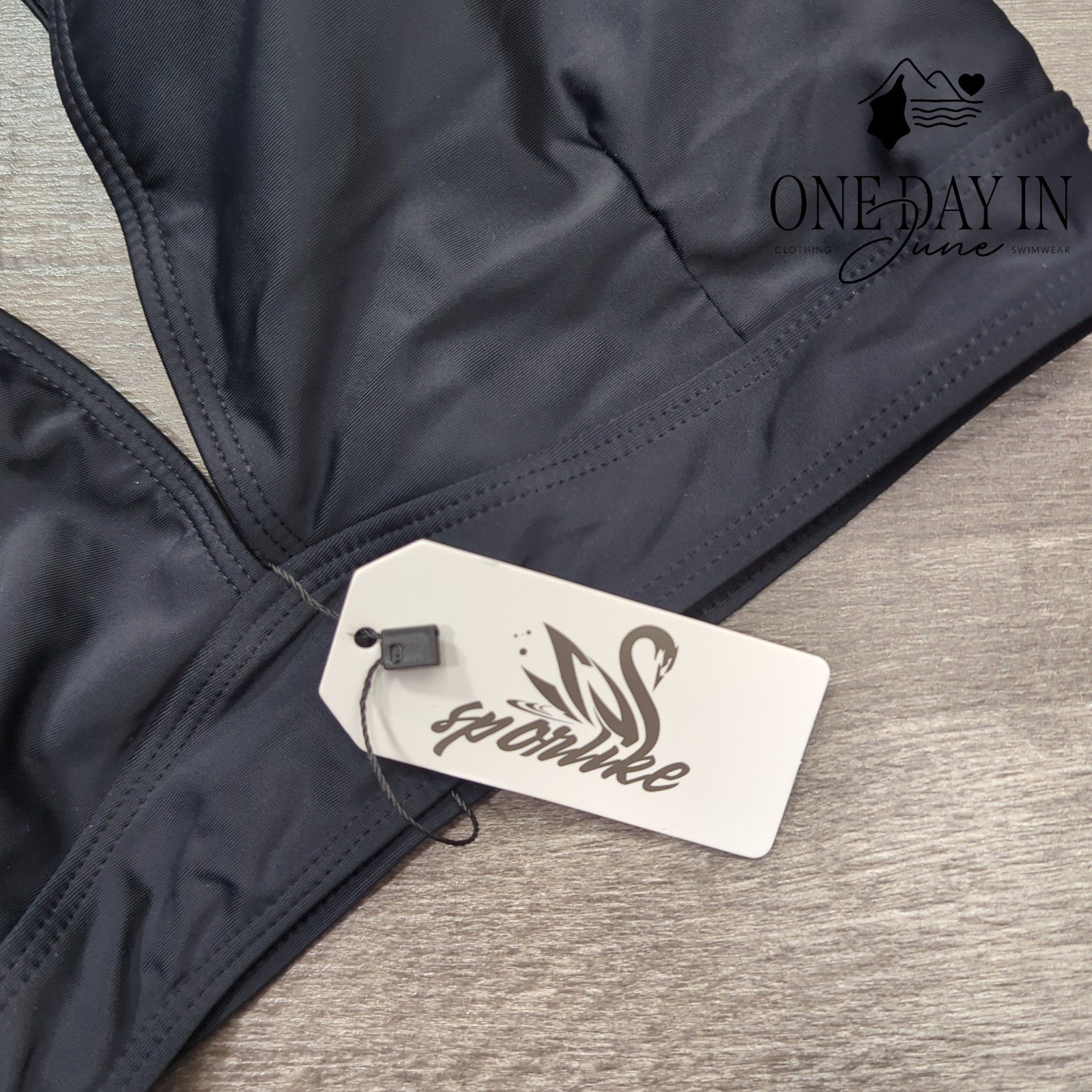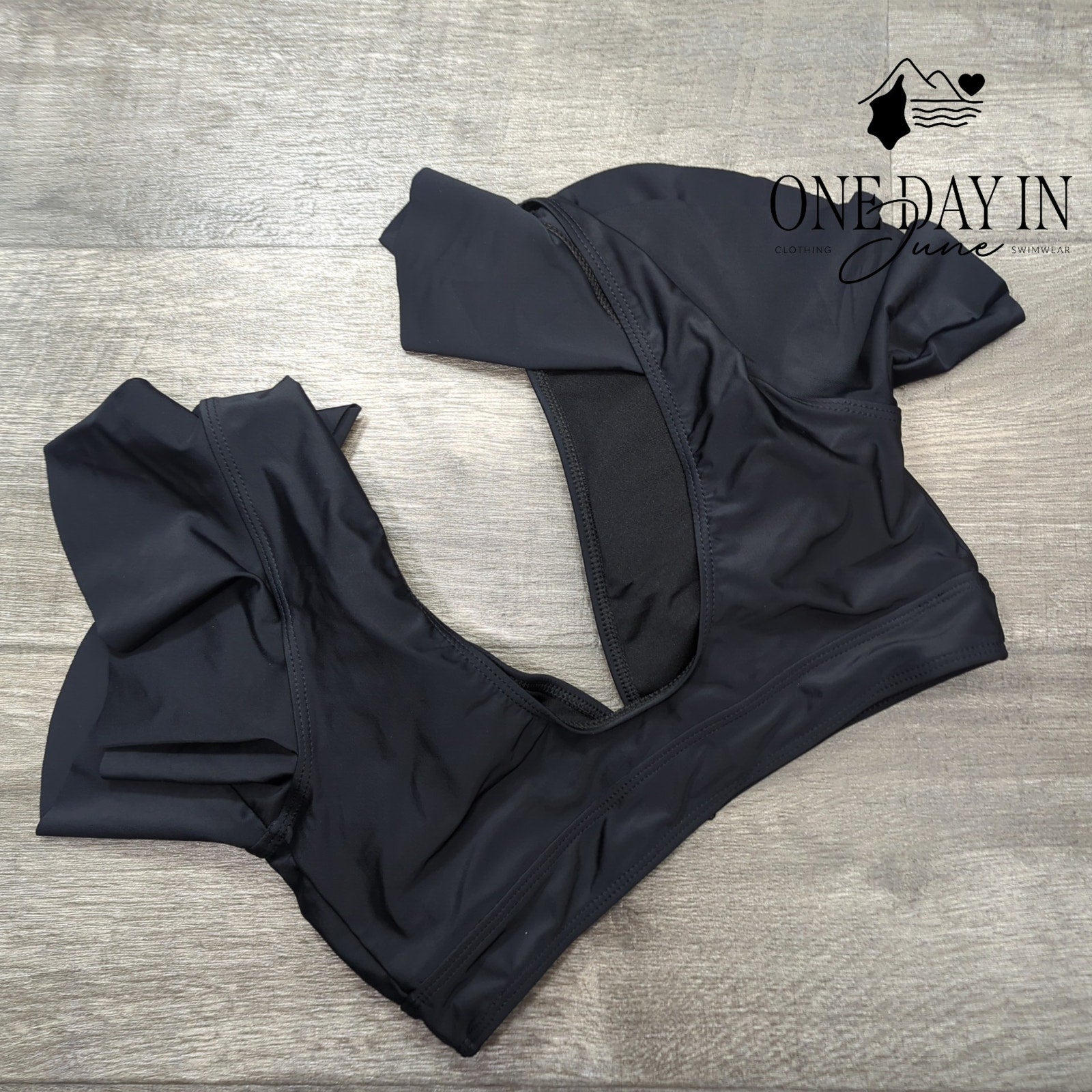 Tags: #SportySwimwear #BlackBikiniTop #RuffleBikini