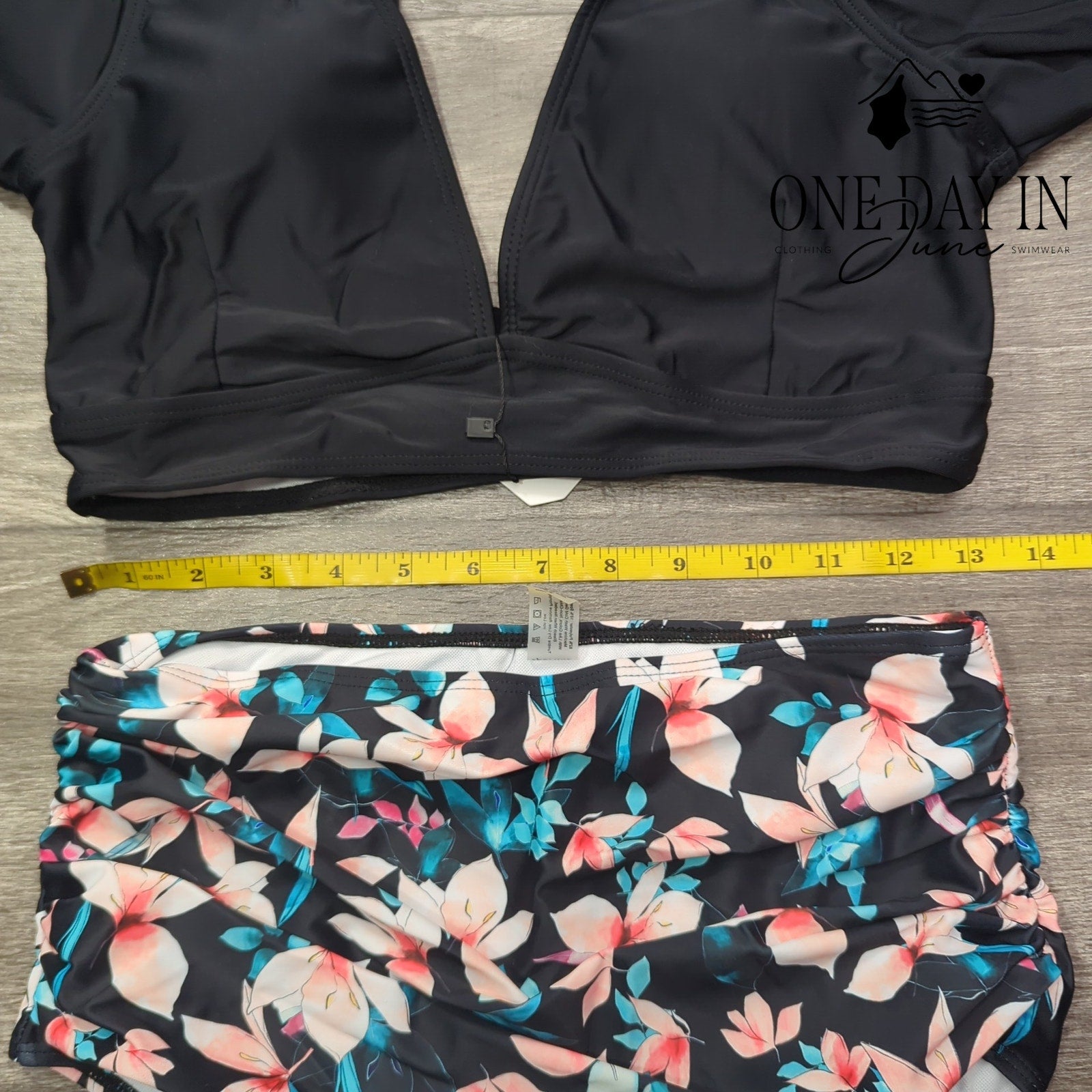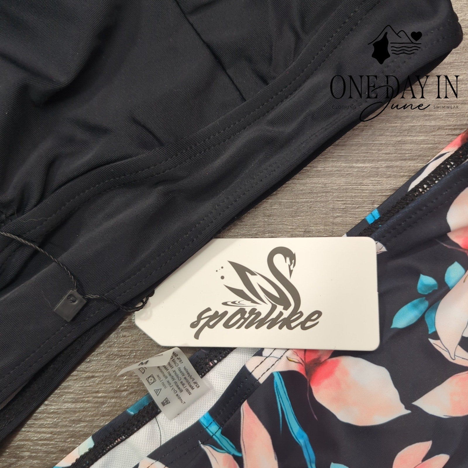 Tags: #SportySwimwear #BlackBikini #RuffleDetail