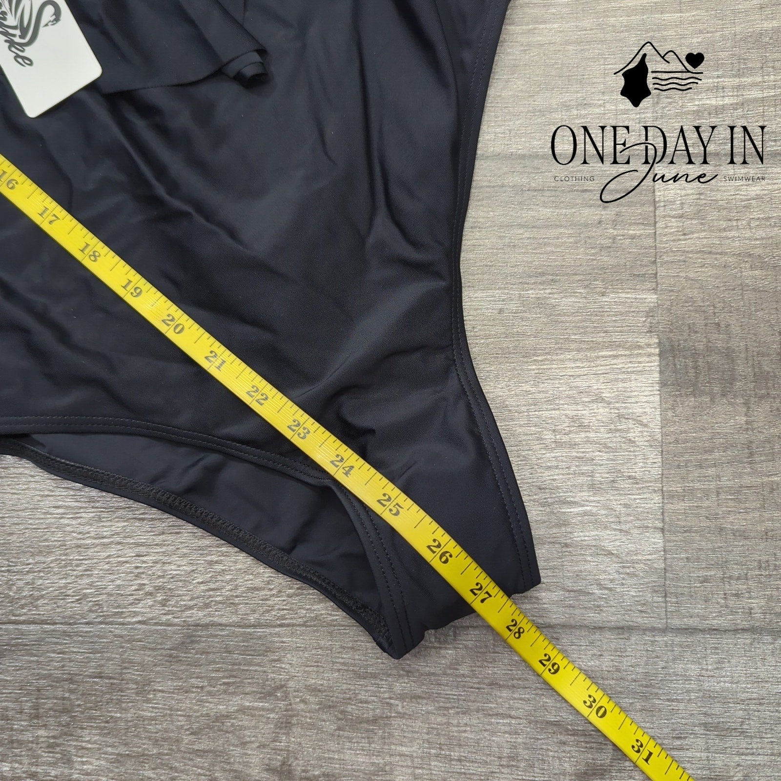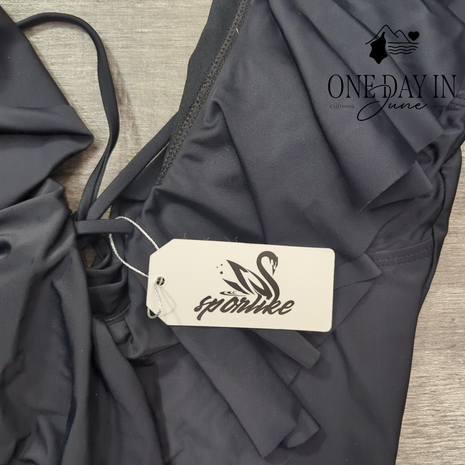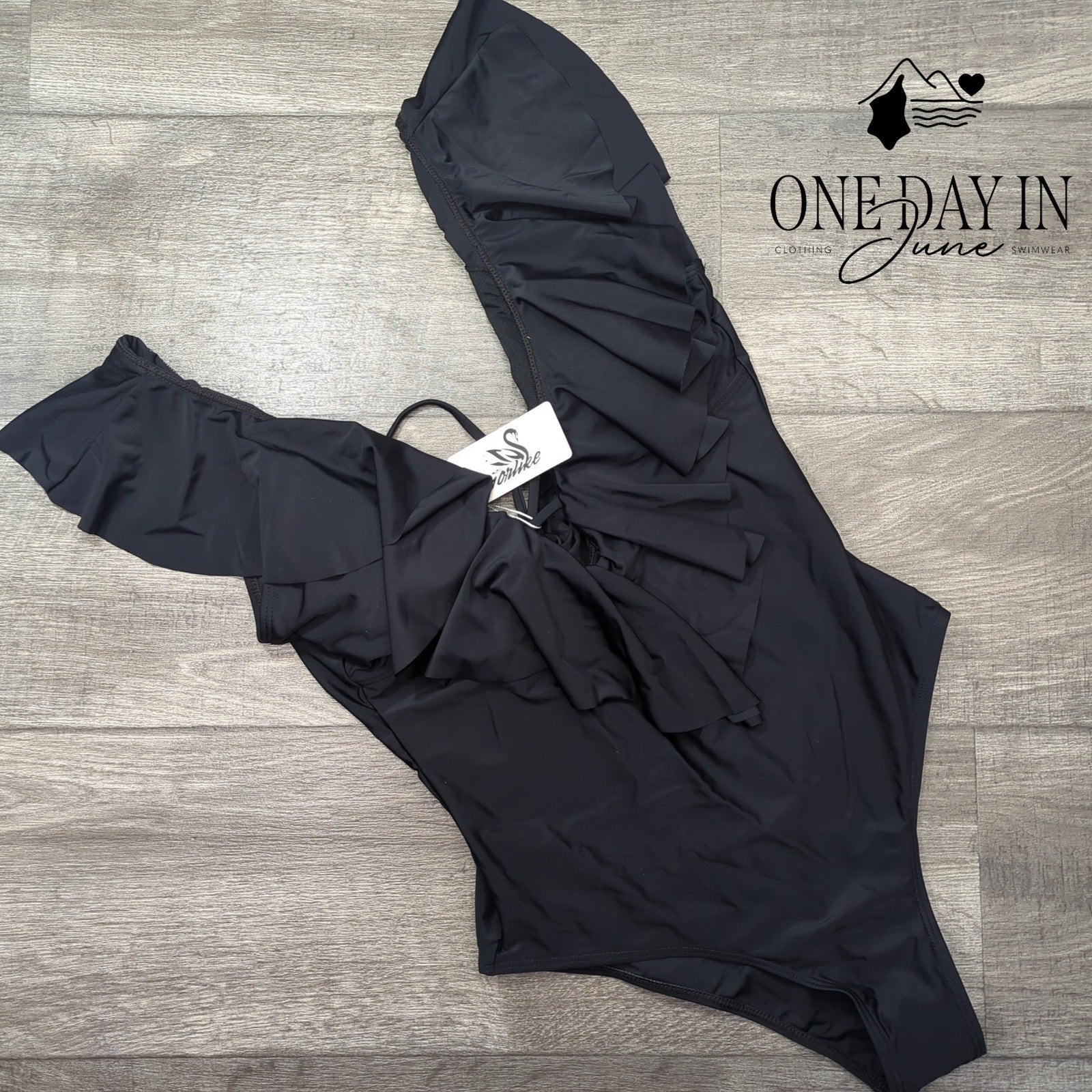 Tags: #BlackSwimsuit #RuffleShoulderSwimwear #Onepiece