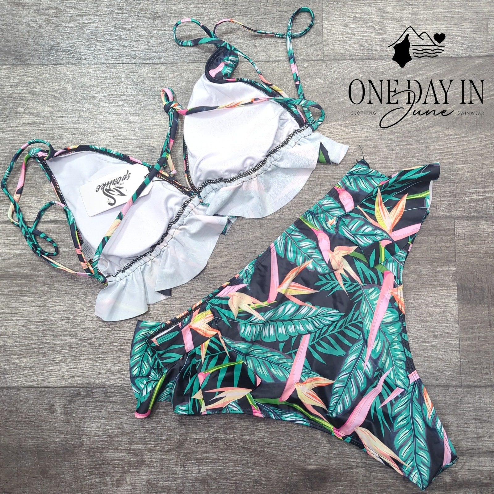 Sporlike Ruffle Triangle Bikini Swimsuit Size L