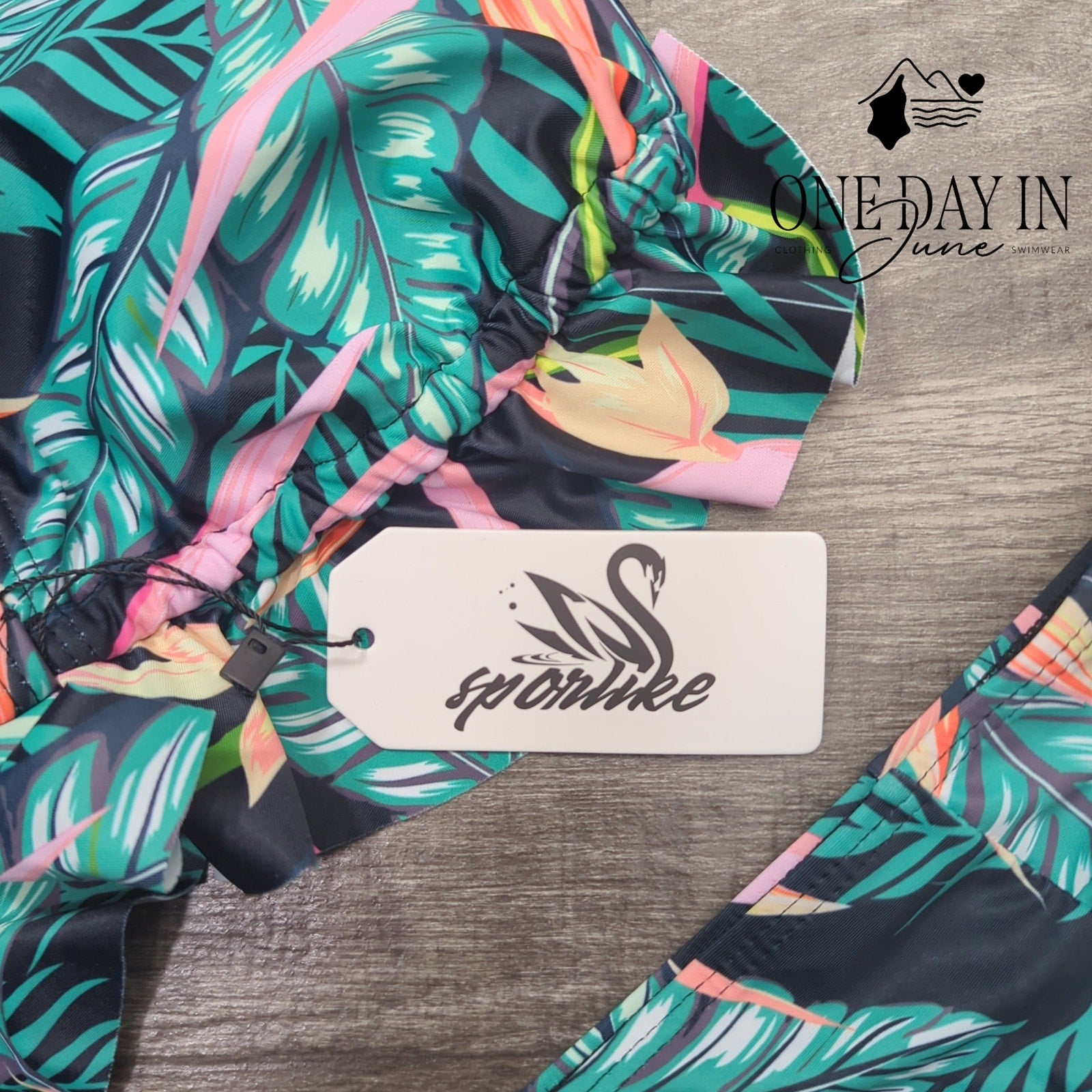 Tags: #SportySwimwear #BlackGreenBikini #BeachFashion
