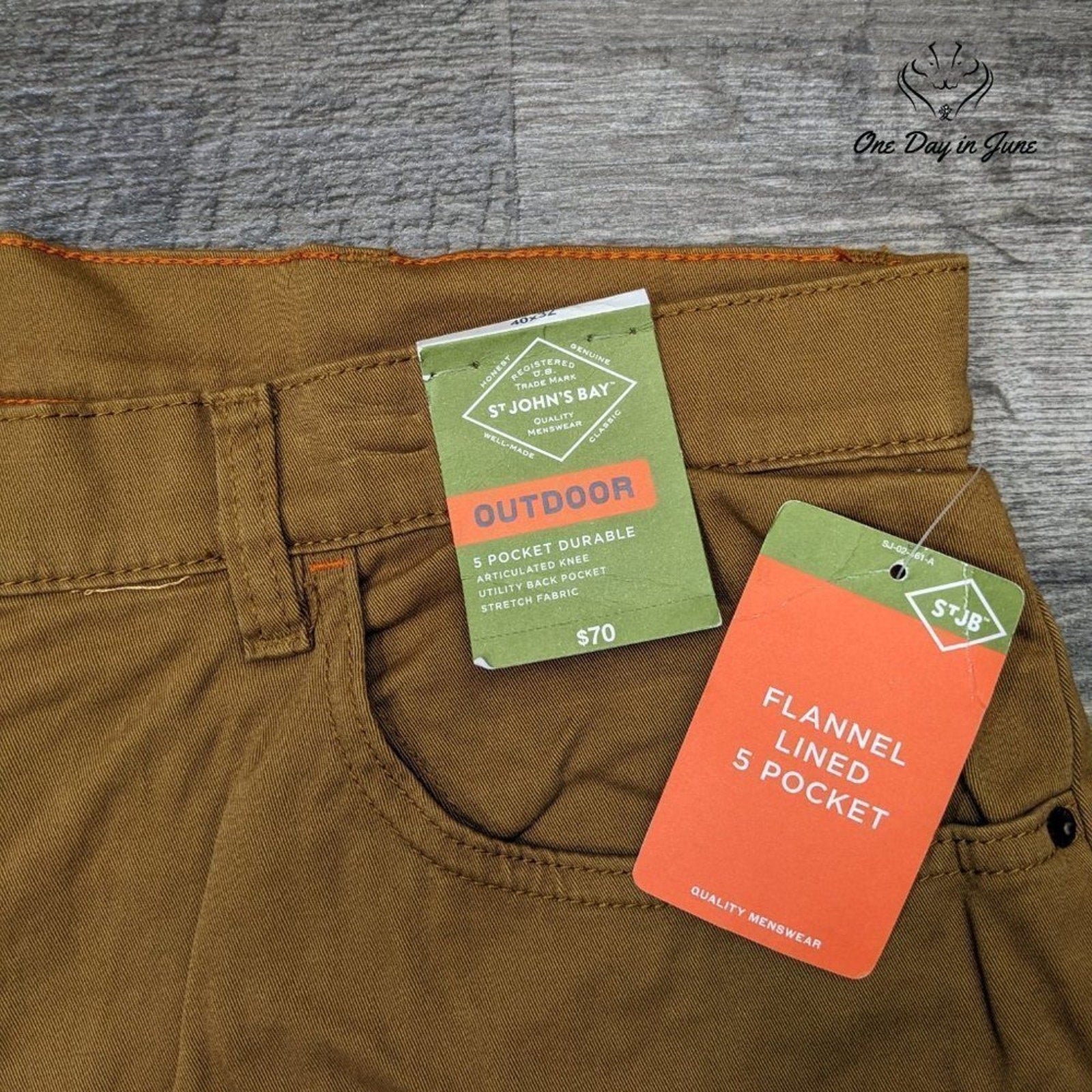 Experience unparalleled comfort and durability with these new St. John's Bay Articulated Knee 5 Pocket Outdoor Pants. Perfect for outdoor activities, these brown pants are made with a versatile cotton/spandex blend that ensures flexible movement.