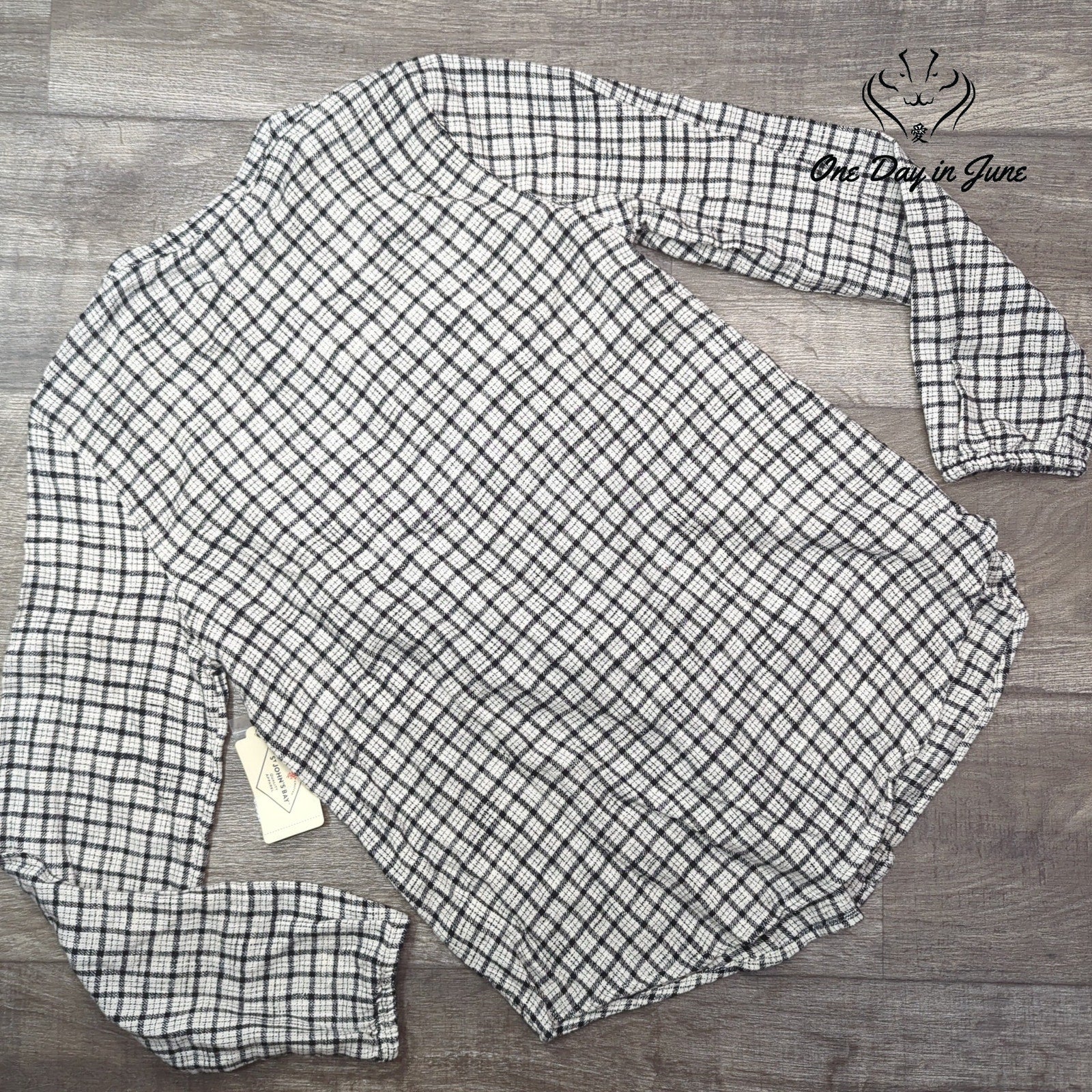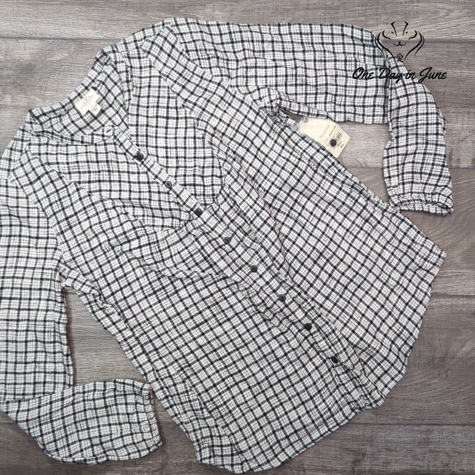 With stripes of midnight black and snow-white delight, this St. John's Bay top is such a wonderful sight! A classic cotton button-front with sleeves to the wrist, this brand new treasure simply must not be missed.