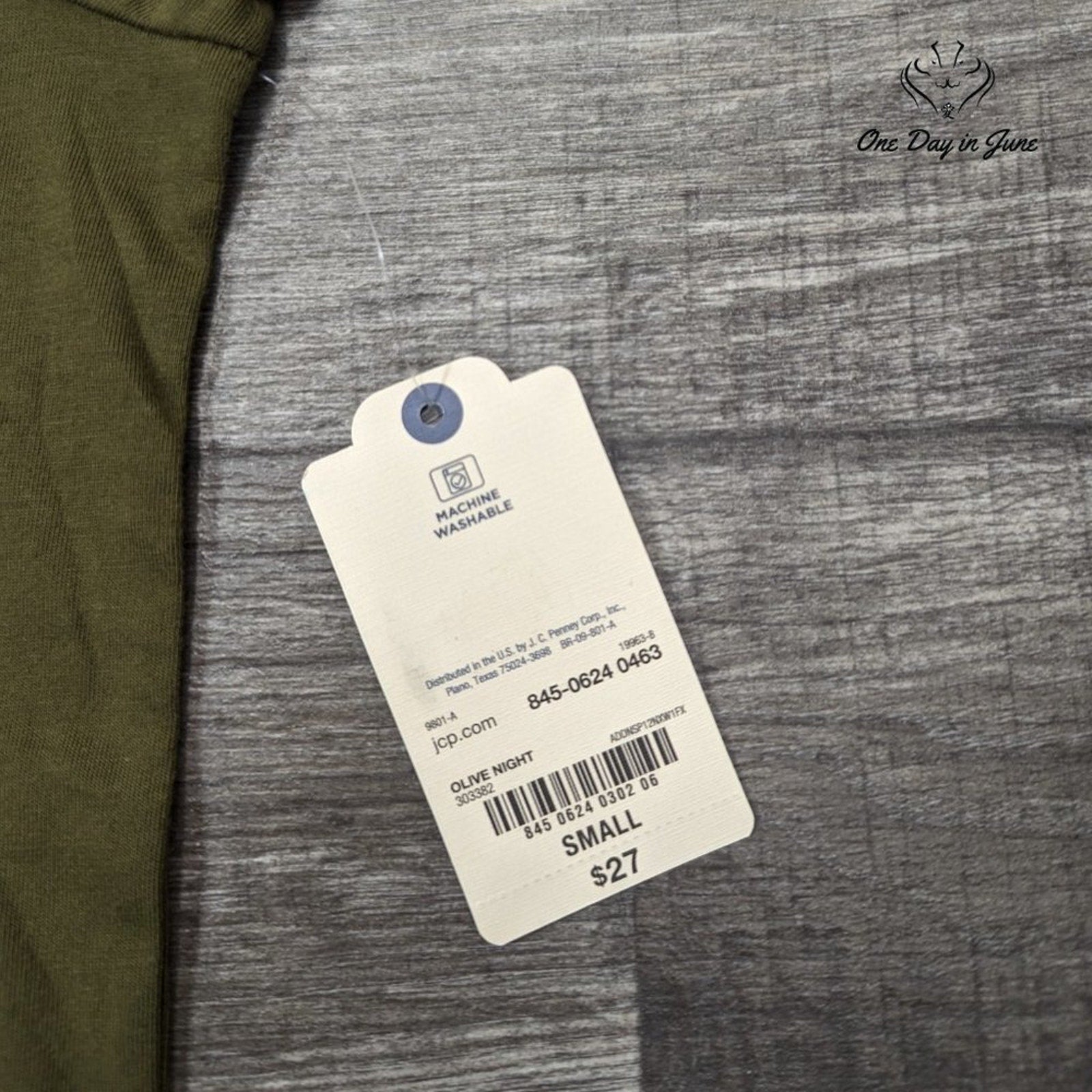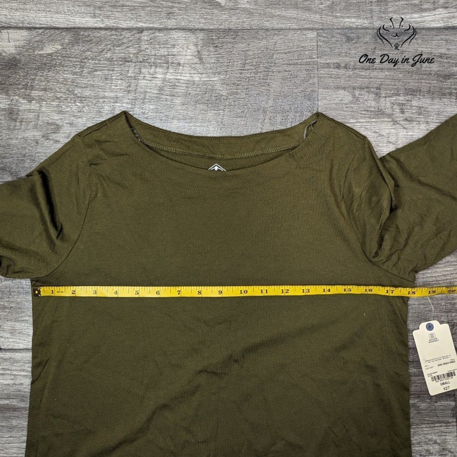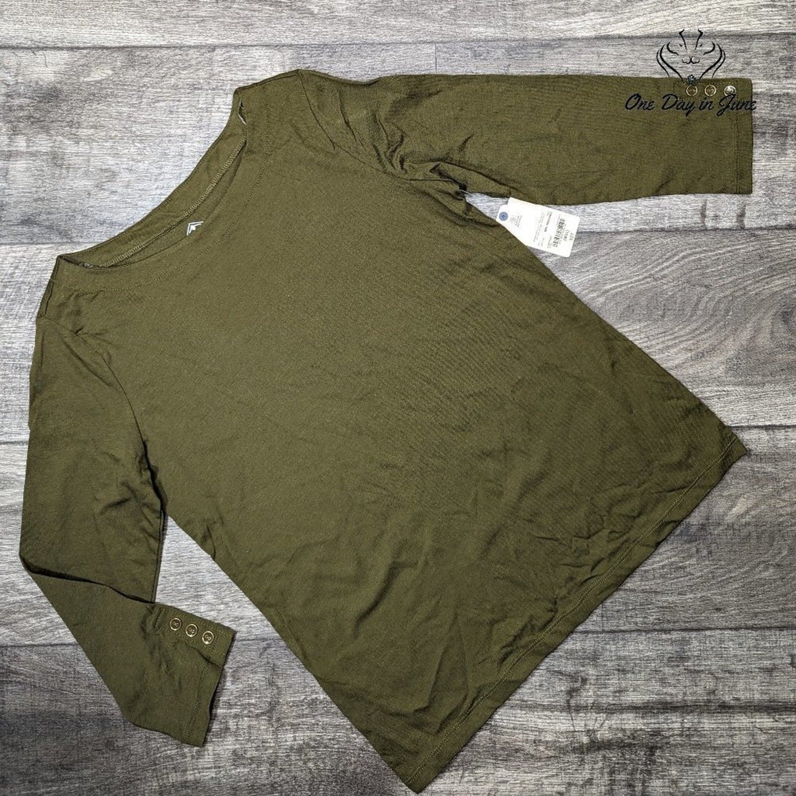 An unhinged plunge into the abyss of verdant hues, this St. John's Bay boat neck top grapples with the beast of fashion and emerges victorious. A long-sleeved harbinger of the timeless, melding cotton and polyester into an unholy matrimony of comfort, it's a fresh-off-the-rack adventure wrapped in a riotous symphony of the senses. Seize it, wear it, be transformed.