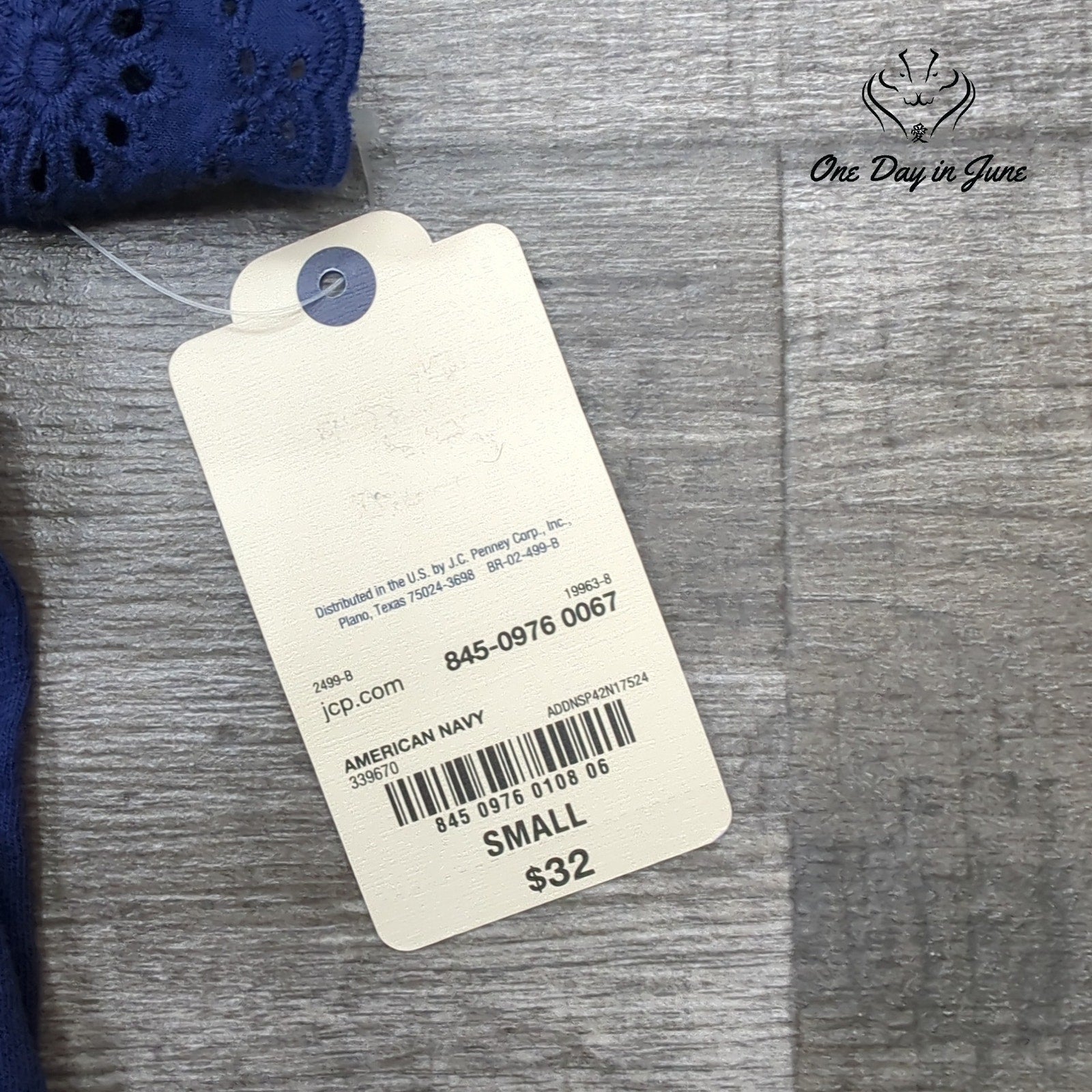A charming blue t-shirt, elevated by delicate lace sleeves that bring an air of feminine refinement to casual dress. This new St. John's Bay garment features the softest cotton and would make a most becoming addition to any gentlewoman's wardrobe.