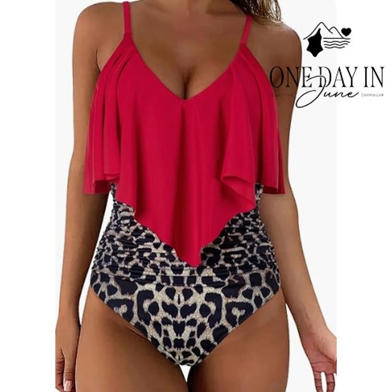 This leopard-print one piece captures the wild elegance of a summer evening, its ruffled details dancing like champagne bubbles against sun-kissed skin. Rich brown and crimson hues swirl together with the untamed grace of a jazz melody, while the luxurious blend of polyester and spandex promises both comfort and allure. A swimsuit destined for those golden afternoons when the world seems as endless as the horizon.