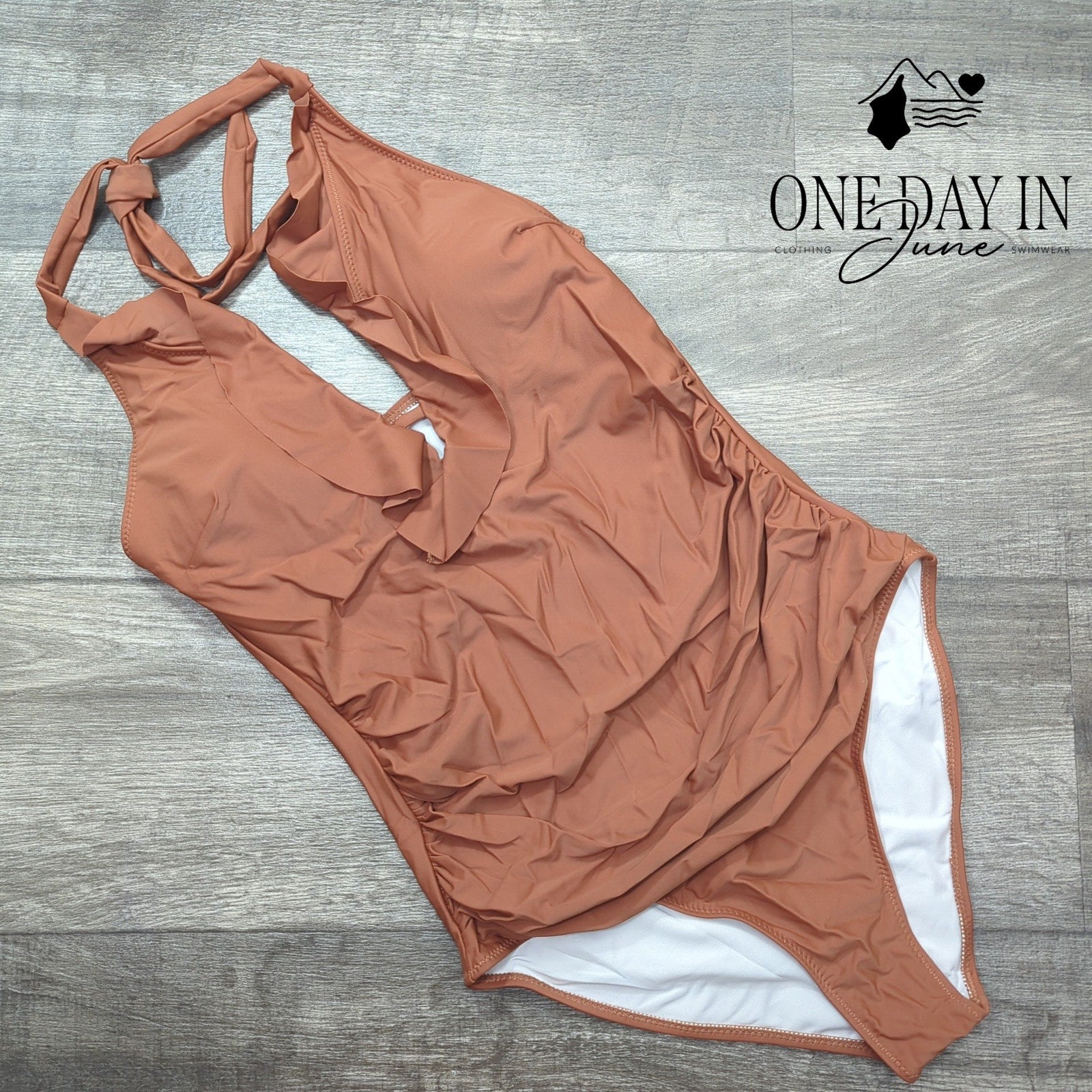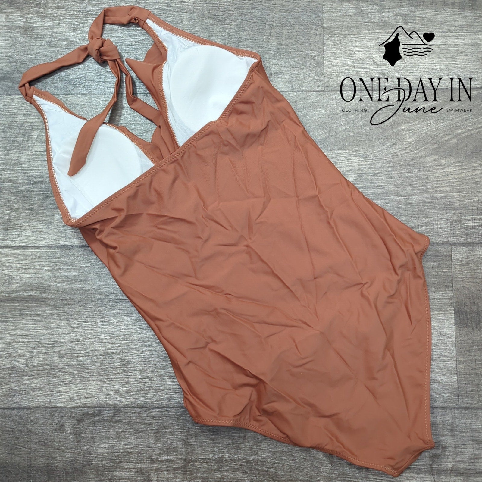 Tags: #SuuksessSwimwear #BrownSwimsuit #VNeckOnepiece