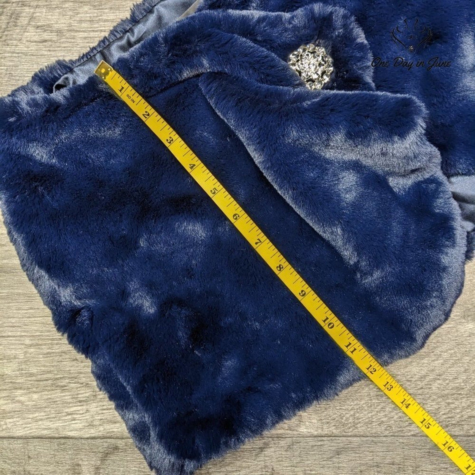 Drift into a world of azure elegance with this Tahari Faux Fur Cape, a luxurious dream of sapphire softness against winter's harsh breath. The polyester mimics sumptuous fur with such convincing artistry that one might imagine it plucked from the wardrobe of Gatsby's most enigmatic guest, beckoning with its pristine, never-worn allure.