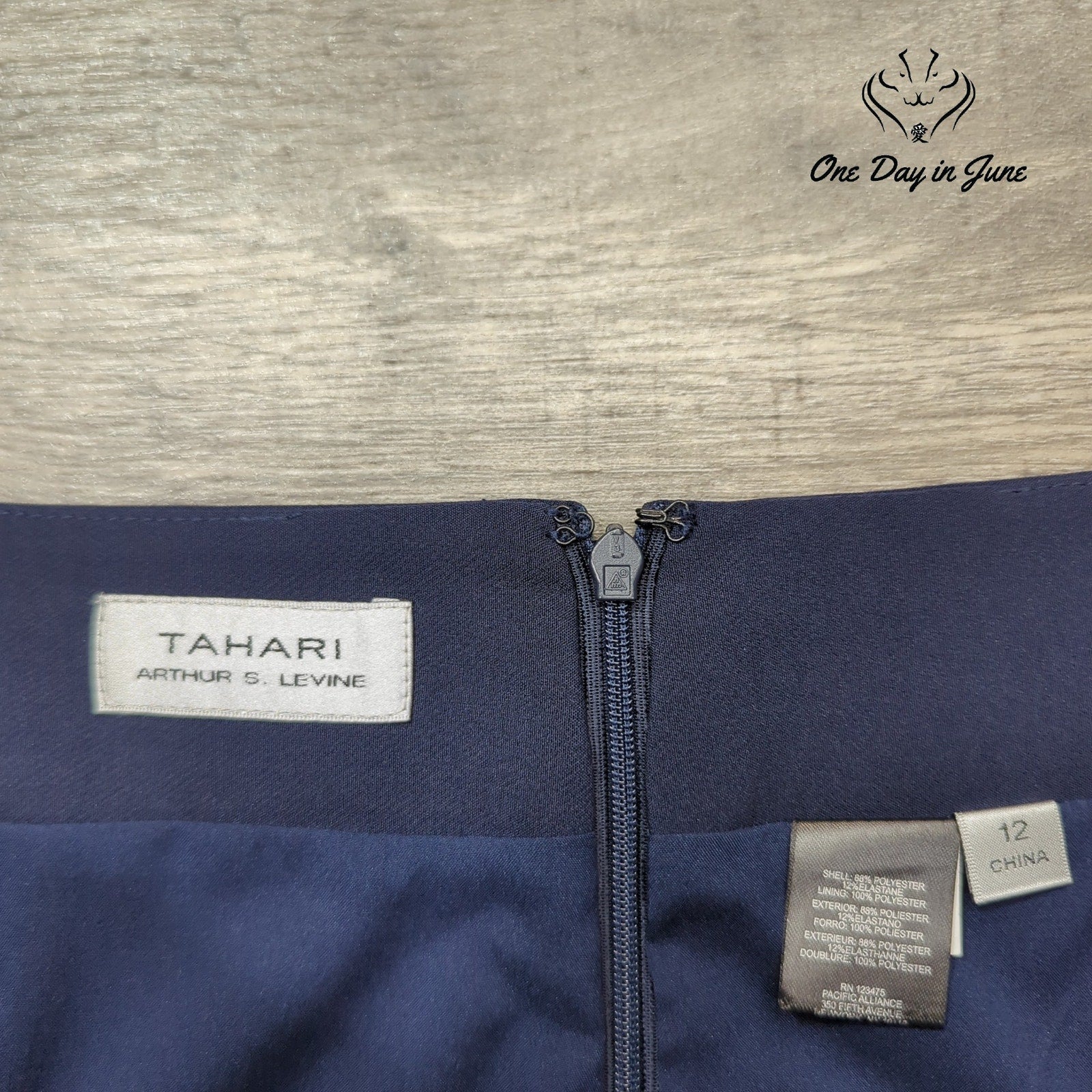 The electric blue fabric writhes and shimmers like a desert mirage, clinging to reality with a stretchy determination that would make a televangelist weep with envy. This Tahari masterpiece of sartorial splendor remains pristine and untarnished by the ravages of time, stalking the line between professional power and dangerous curves with the precision of a jungle cat in heat.