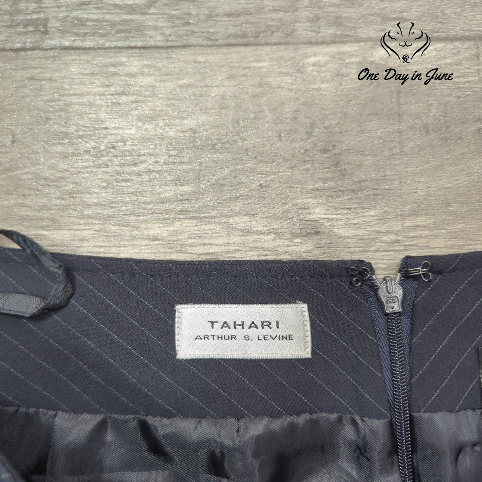 Fear and loathing in the corporate jungle, where pinstripes reign supreme and the pencil skirt is your armor against the savage beasts of the boardroom. This Tahari creation, black as the heart of a lawyer on a Sunday morning, is a polyester-rayon-spandex concoction that clings like a desperate politician to a campaign promise, lined for your pleasure and ready to slice through the competition like a hot knife through the bloated belly of capitalism.