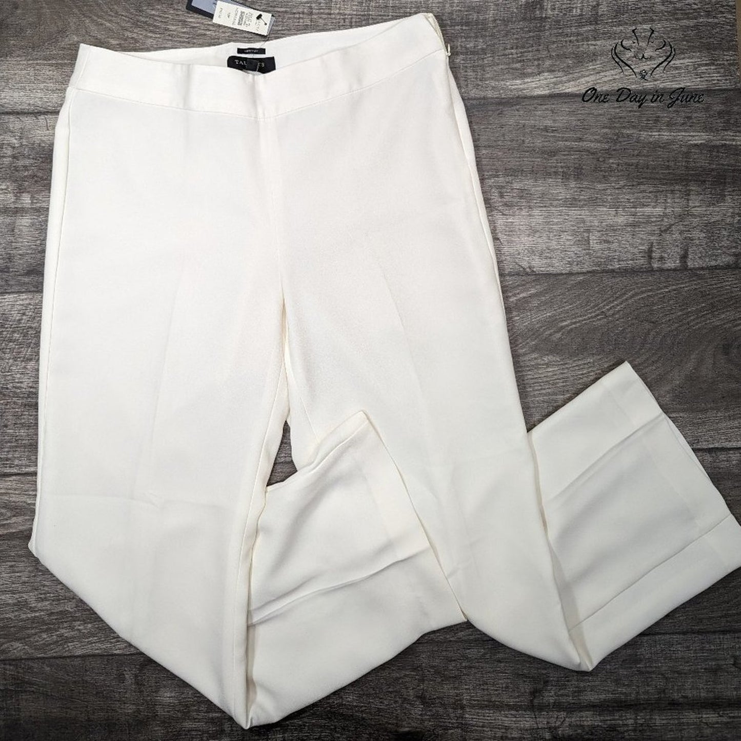 These Talbots Heritage Petite Straight Leg Pants are virgin, untouched by wear. Crafted meticulously from sturdy polyester, they lay in a soft off-white color. The lining speaks of careful design, a promise of comfort, and an unbroken elegance.