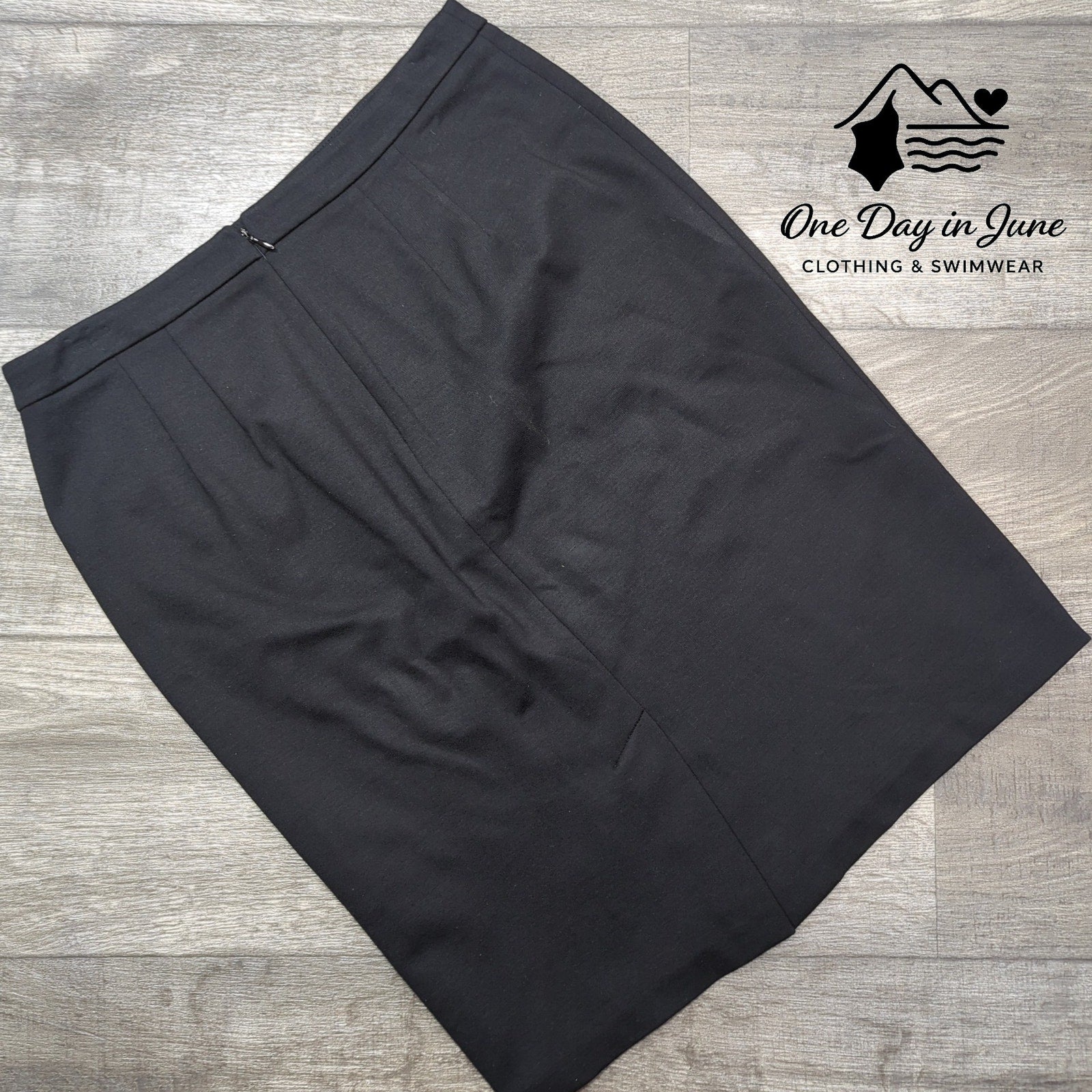 This elegant Talbots pencil skirt, as dark as a moonless night, promises to flatter the figure of any discerning lady. Crafted from a sumptuous blend of rayon, nylon, and spandex, it remains in a condition so pristine one might believe it has never graced the form of its previous owner.