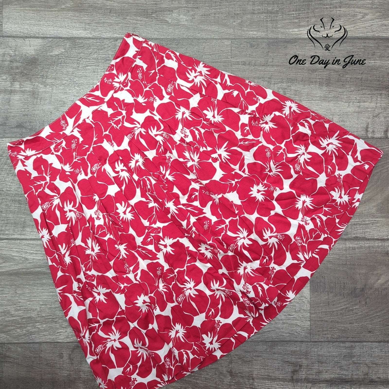 In a whirlwind of crimson petals, this Talbots skirt blooms like a fever dream in the desert, pleats rippling like waves of heat on the horizon. It's a cotton confection with just enough stretch to cling to your curves as you sway through the neon-lit jungle of civilization, a beacon of floral rebellion in a world gone mad.