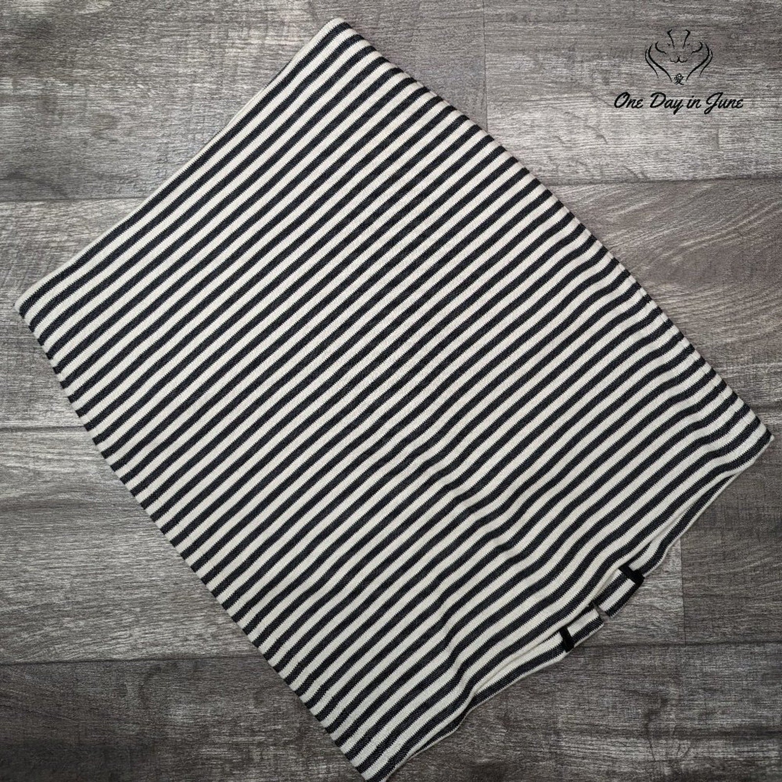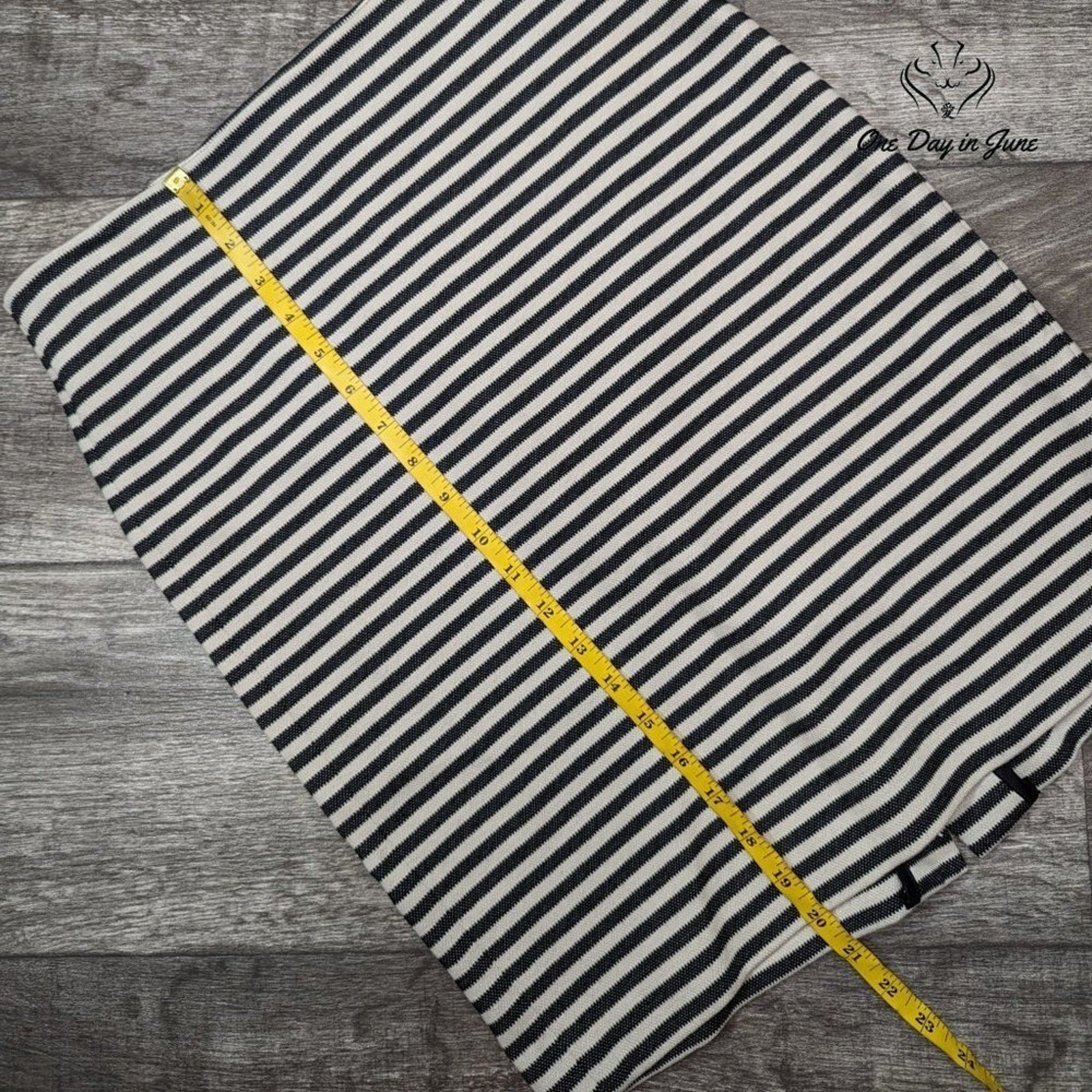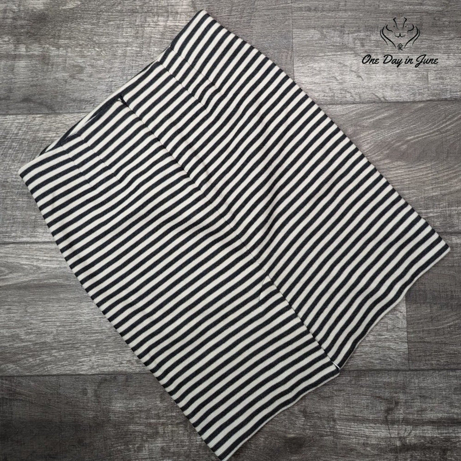This, my dear, is a black and white striped skirt from Talbots, radiating an aura of sophisticated rebellion akin to a zebra running wild in the concrete jungle. Almost untouched, it's crafted from a potent blend of cotton, nylon, and spandex, promising both comfort and a giddy defiance of the mundane. Enter the fray with this sartorial weapon, and let them all marvel at your audacity.