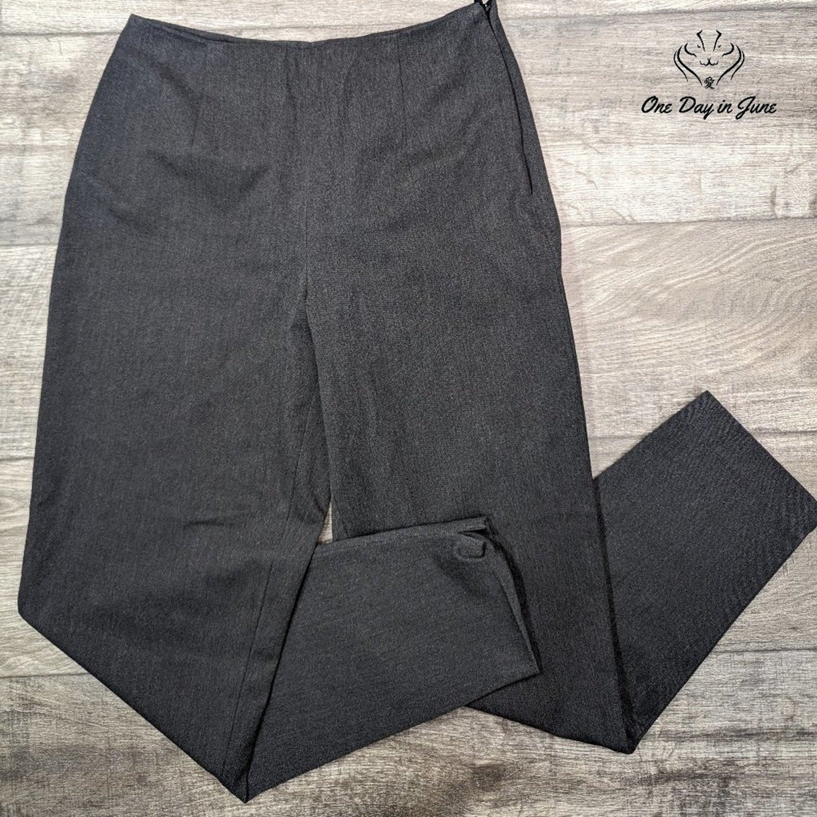 Adorn your form in the elegant simplicity of these Talbots Straight Leg Hip Zipper Dress Pants, presented in a sublime charcoal grey. Fashioned from a blend of polyester, viscicose, and spandex, their like-new condition bespeaks a genteel accent to your attire. Indeed, a charming proclamation of both comfort and style.