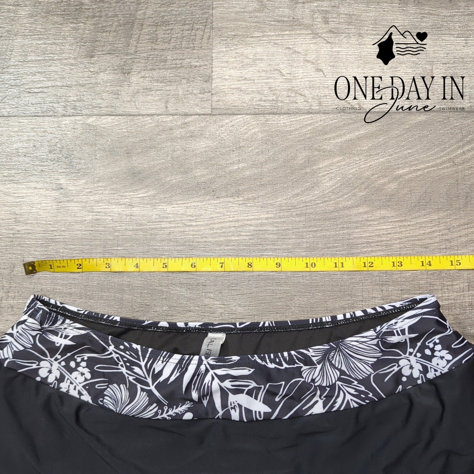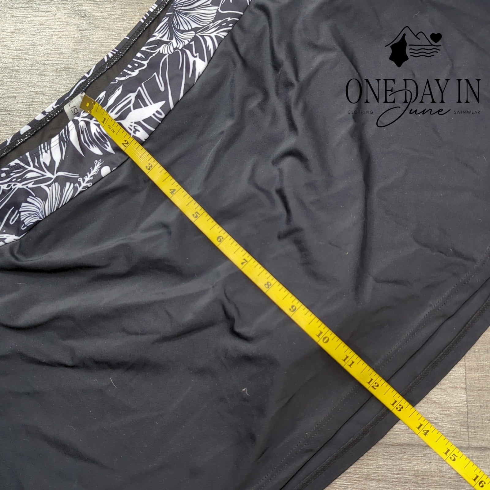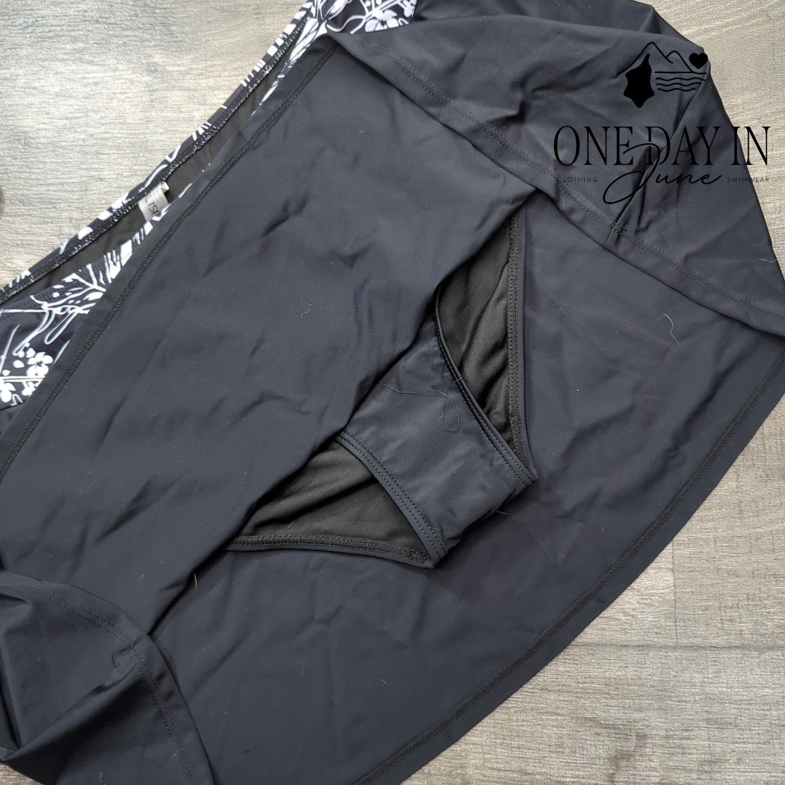 A vision of poolside elegance emerges through this cross-front skirtini, where midnight black meets pristine white to create an enchanting dance of contrasts. This divine creation marries the sophistication of a skirt with the allure of classic swimwear, promising afternoons of languid luxury beneath summer skies. Brand new and untouched, it awaits its destined wearer like a perfectly crafted cocktail at twilight.