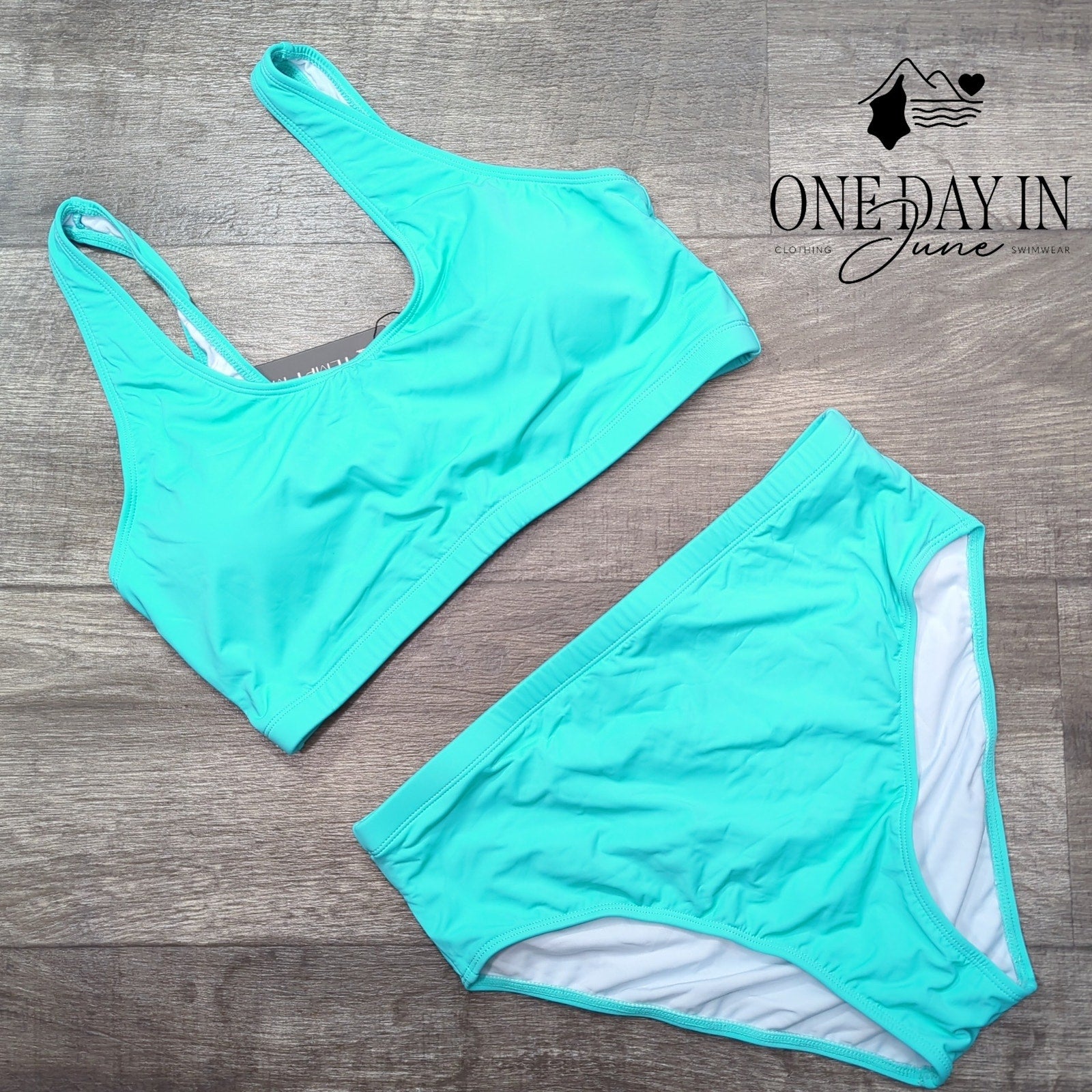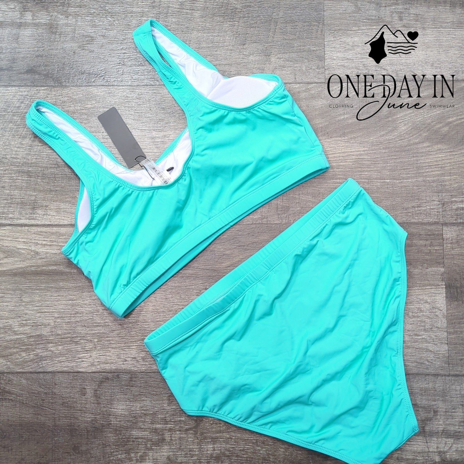 Tags: #TealBikini #HighWaistSwimwear #WomensSwimsuit