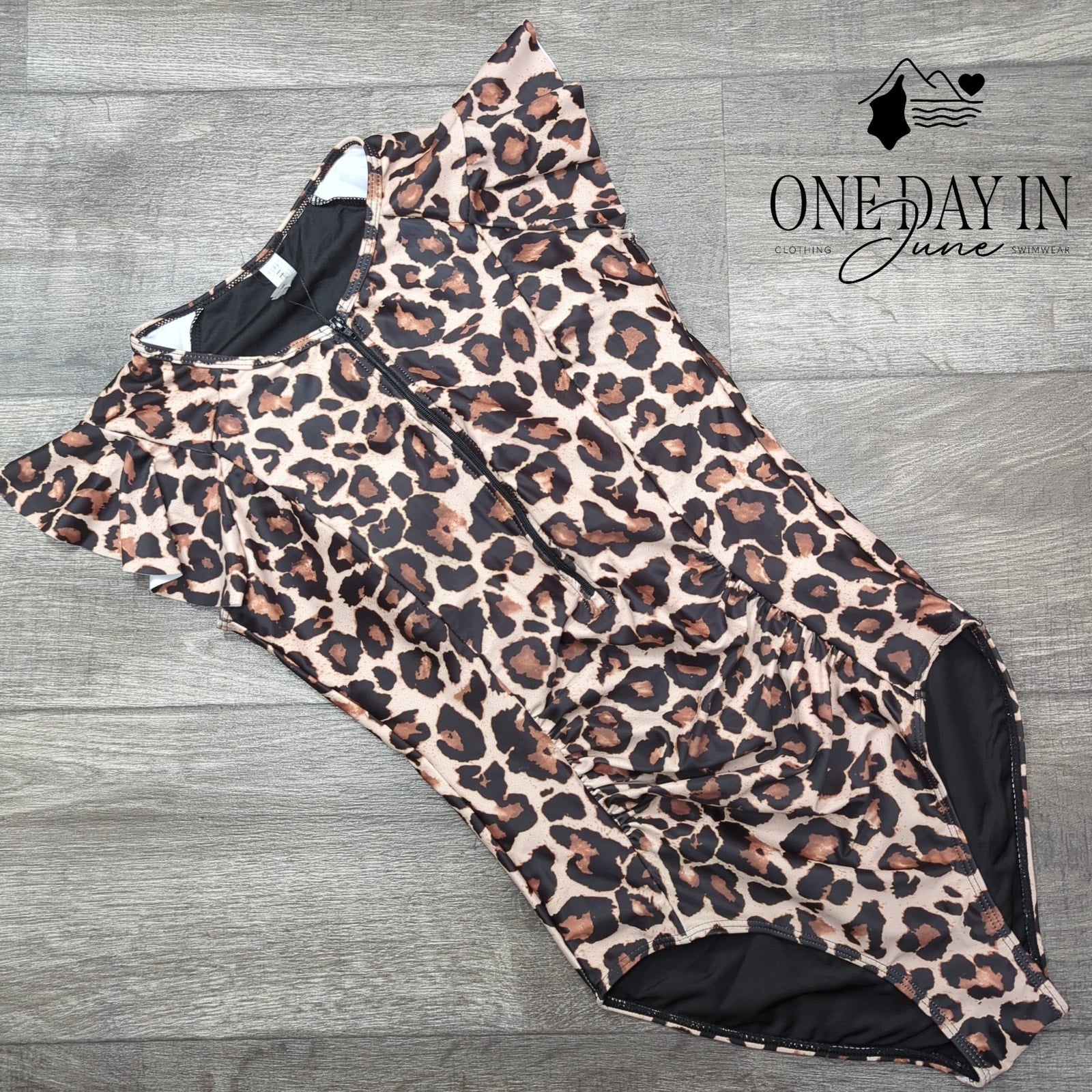 Tempt Me Ruffle Shoulder Zip Front One Piece Swimsuit Size S